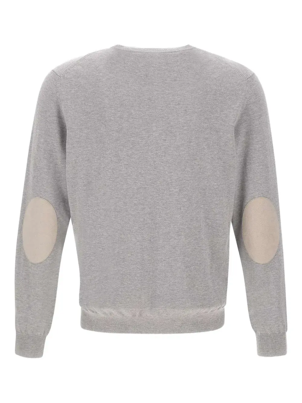 Серые налокотники, ребристый подол, круглый вырез, ребристые манжеты, трикотаж