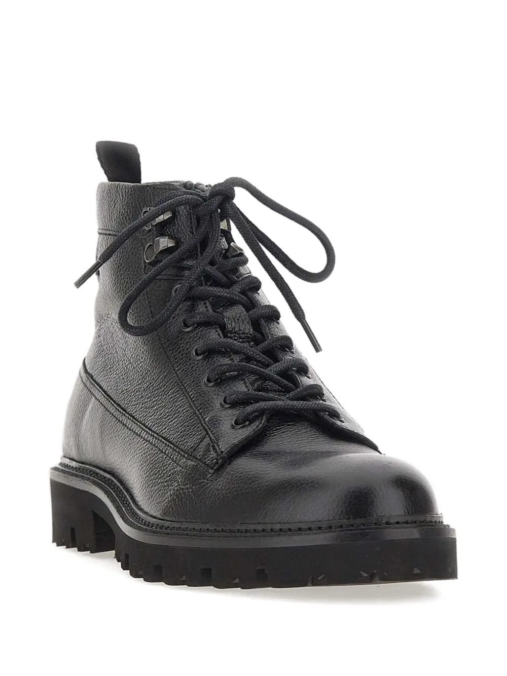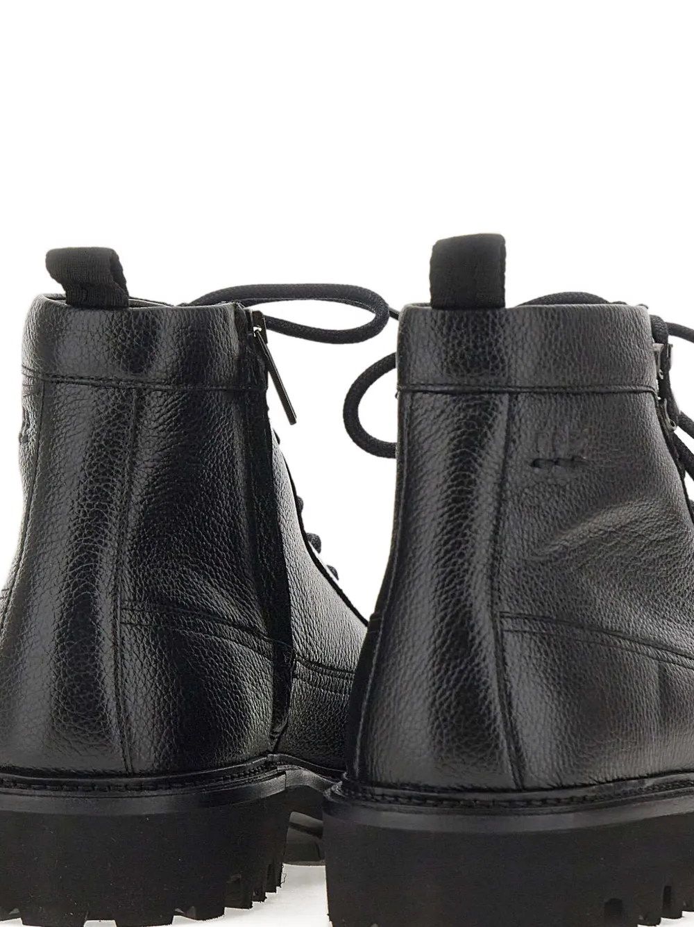 Черные, тисненый логотип, шнуровка, фактурная отделка, петля сзади, рельефная подошва