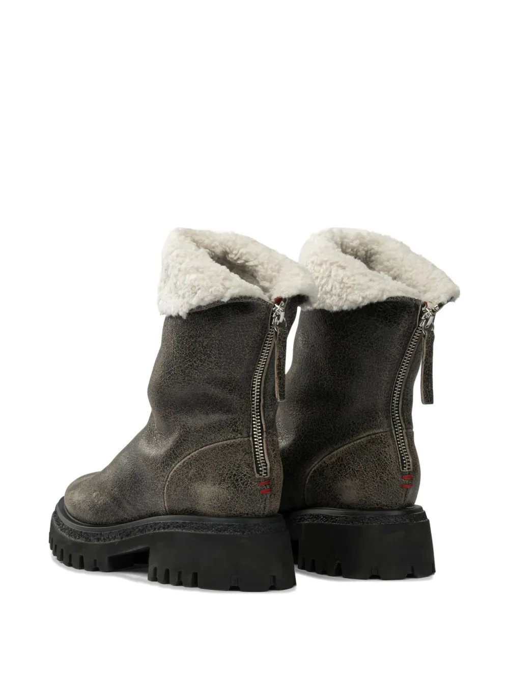 Коричневые ботинки из телячьей кожи с отделкой из искусственного меха, застежкой-молнией и массивной подошвой на устойчивом каблуке