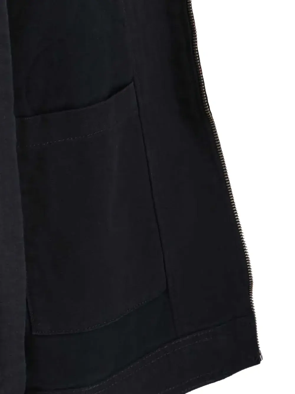 Черный цвет, застежка на молнию, нашивка с логотипом, прорезные карманы, манжеты на пуговицах