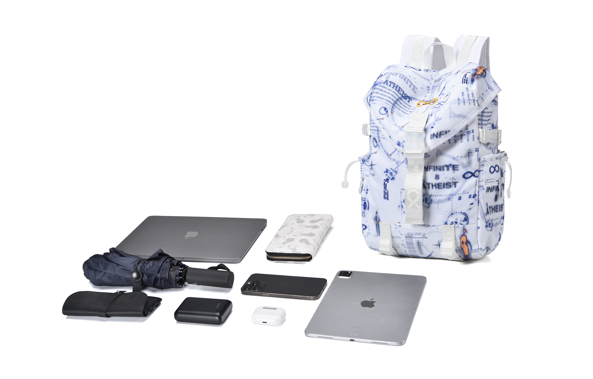 8atheist Полиэстеровый рюкзак обычный унисекс синий узор белая основа, Blue Pattern White Base