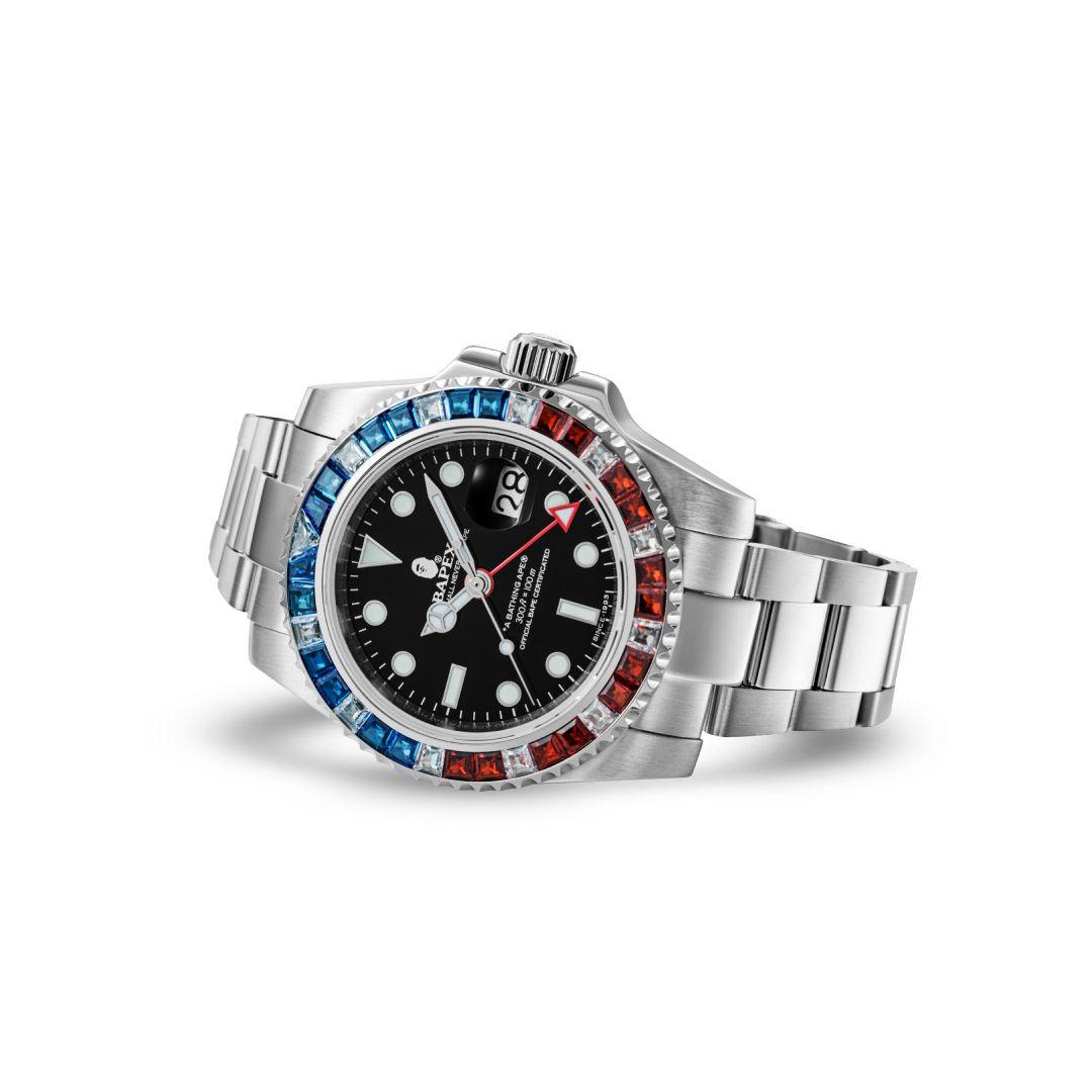 A BATHING APE Часы Type 2 Bapex Crystal Stone 55mm, Blue BLP