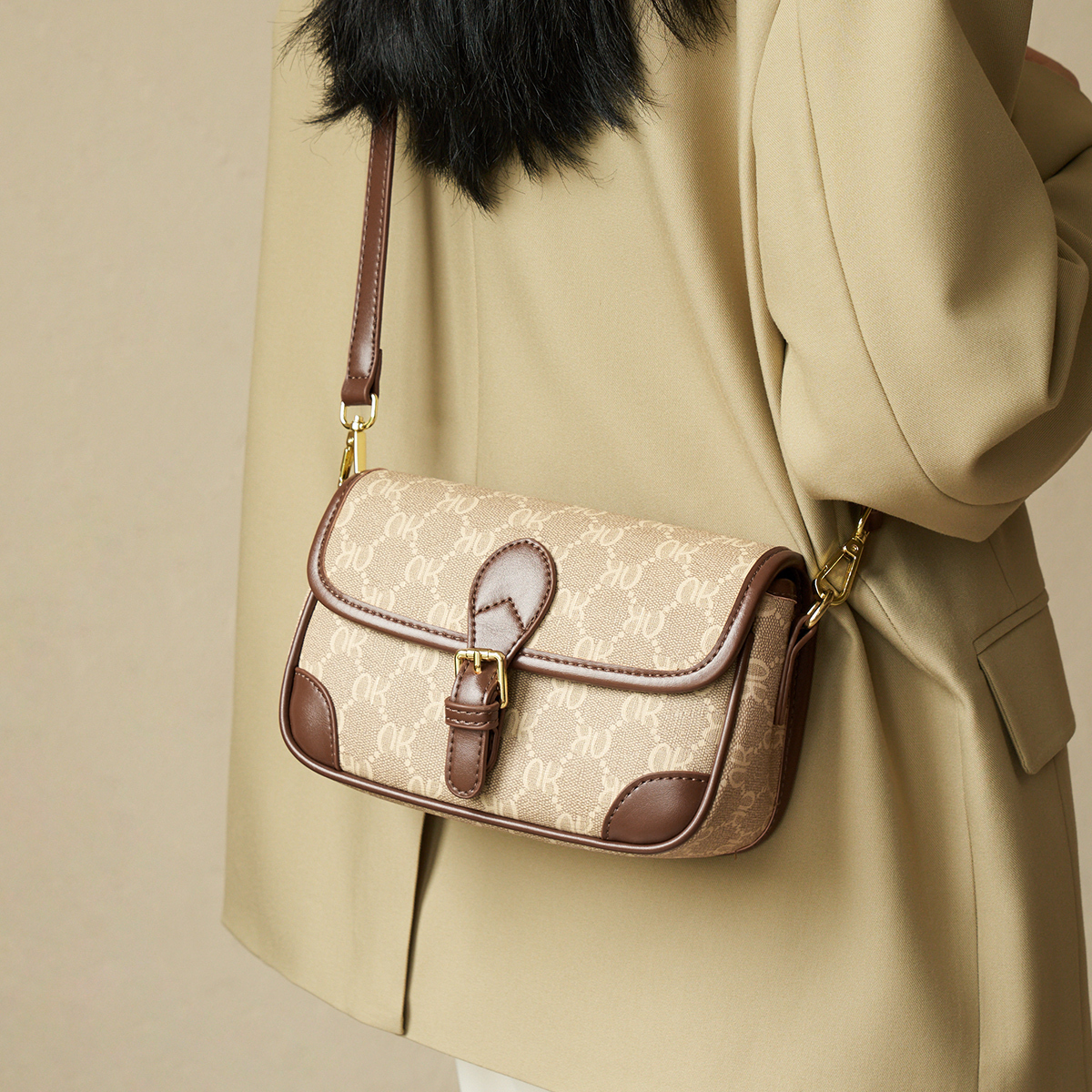 AOKANG ПВХ сумка через плечо, Coffee Brown