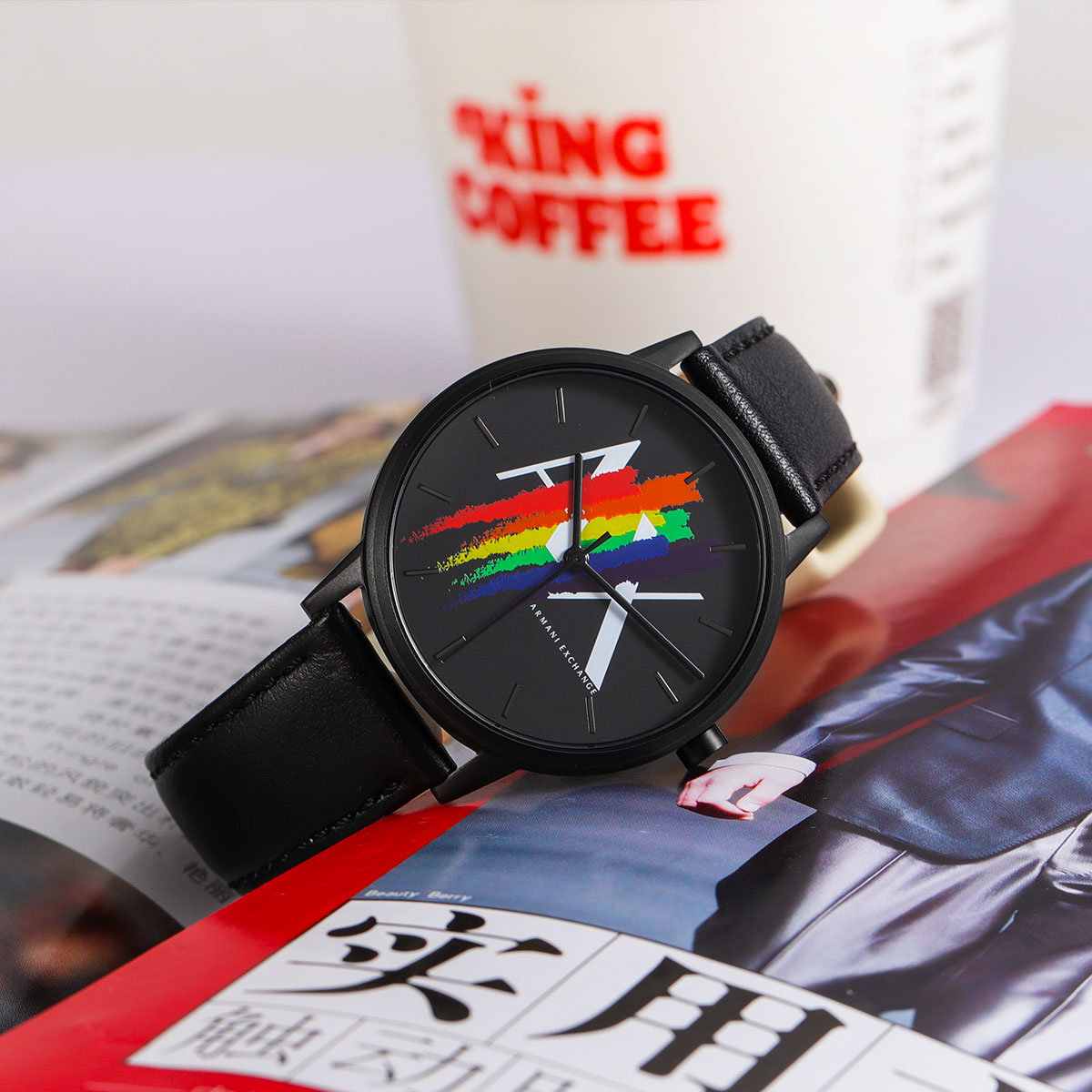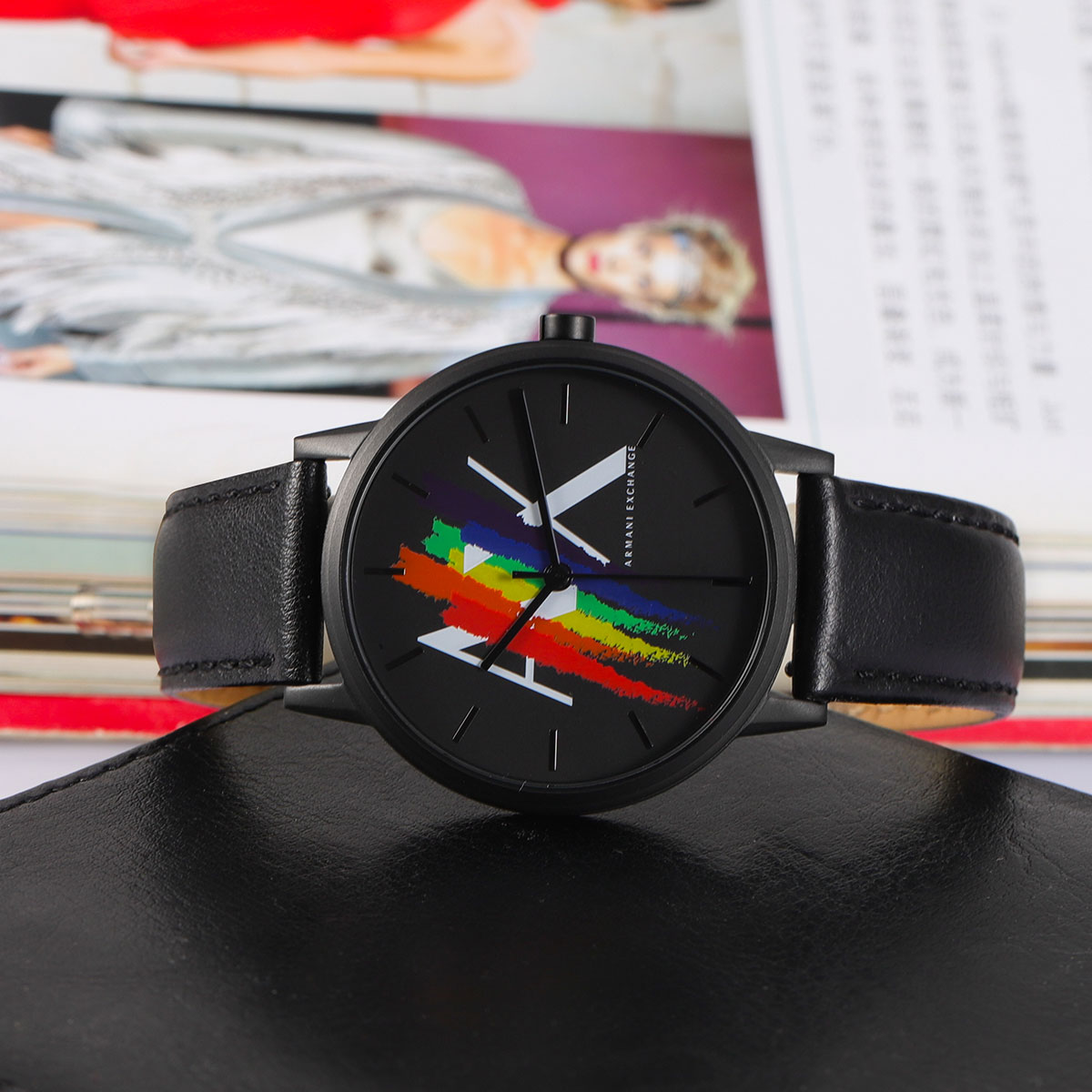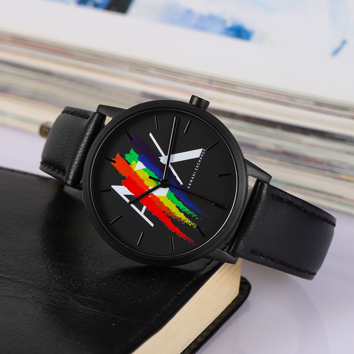 ARMANI EXCHANGE Часы AE Wrist Watch Quartz Movement Leather Strap Black Dial Men's Watch