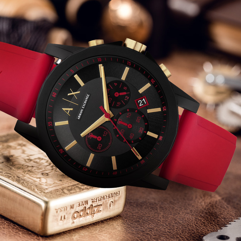 ARMANI EXCHANGE Часы AE Wrist Watch Quartz Movement Silicone Strap Black Dial Men's Watch