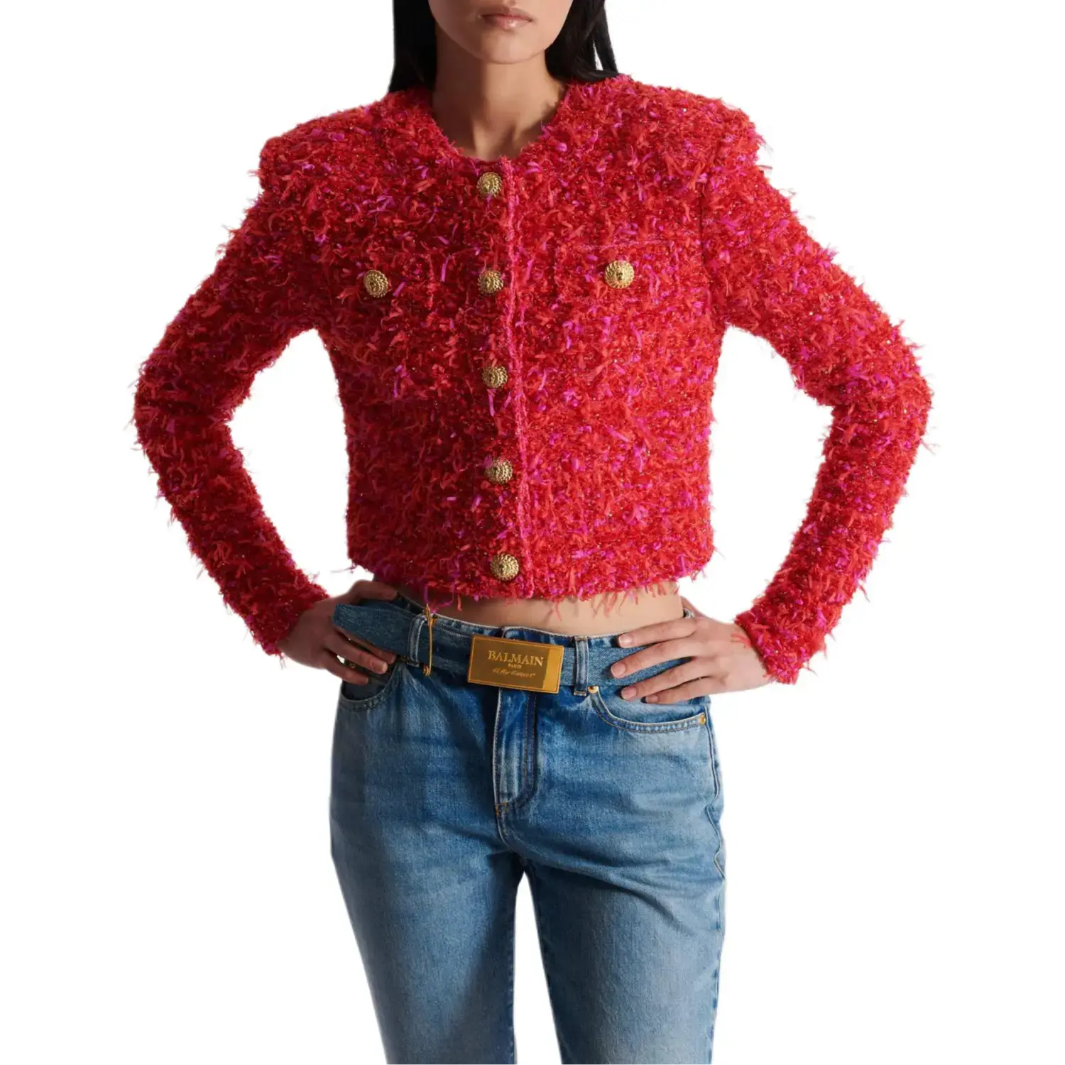 BALMAIN Короткий твидовый жакет, Red