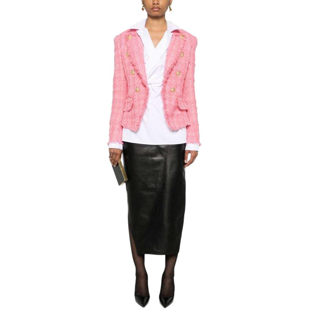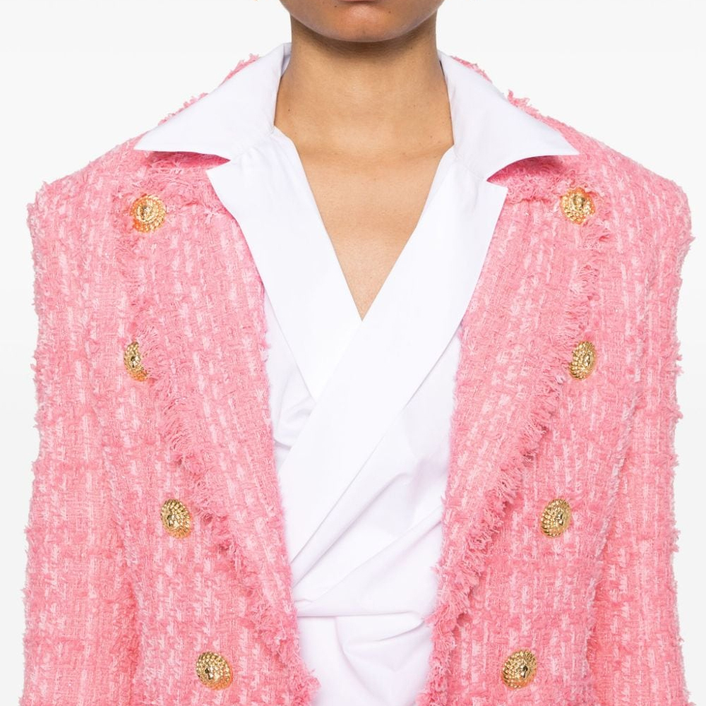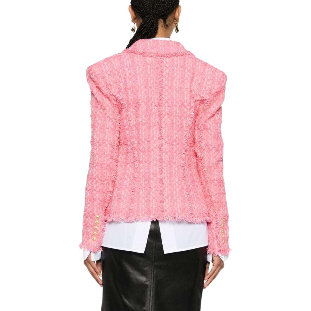 BALMAIN Твидовый пиджак с рельефными пуговицами, Bubble Gum Pink
