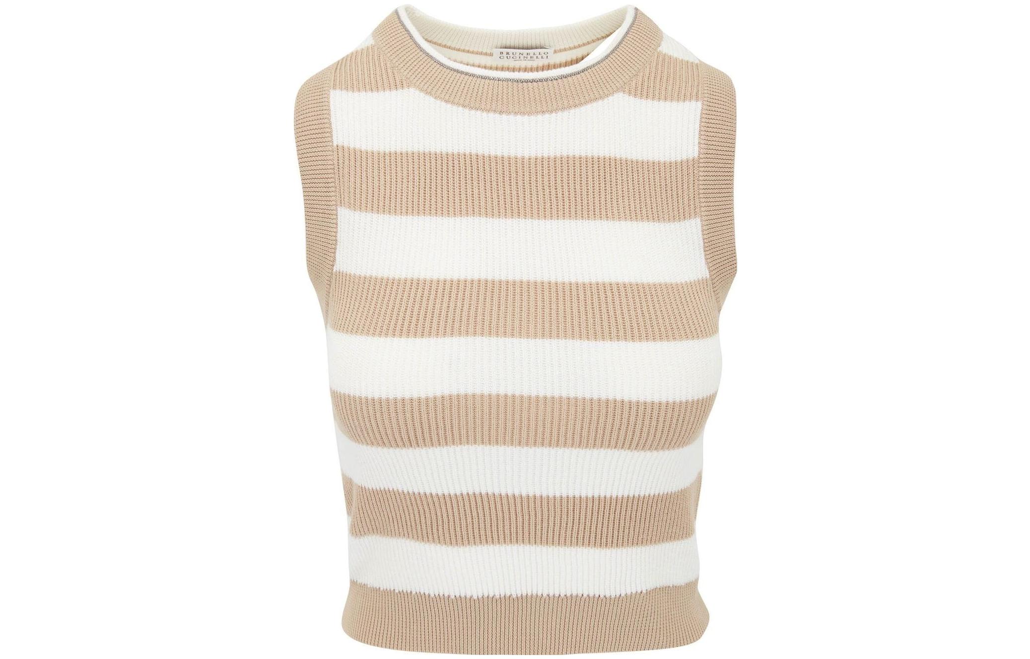 Brunello Cucinelli Полосатый вязаный жилет, Khaki 43 268₽