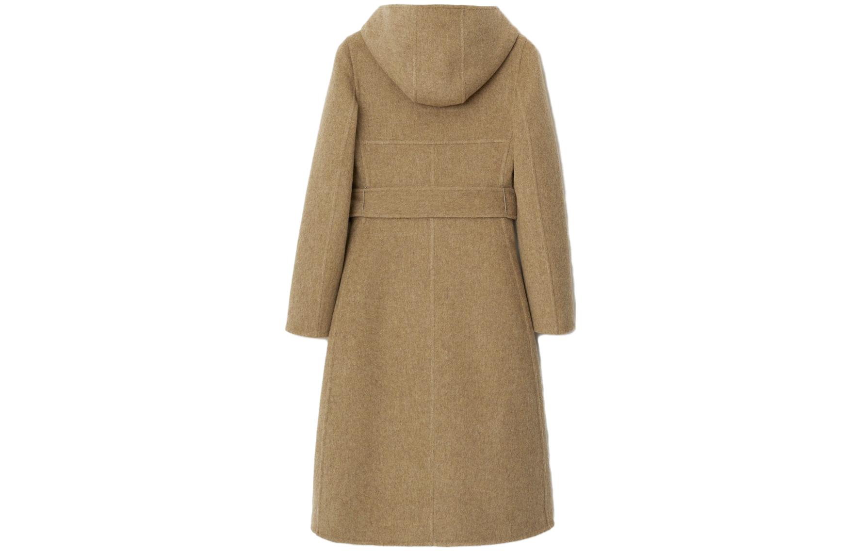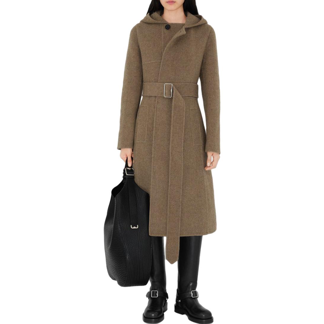 Burberry Длинное пальто с капюшоном и поясом, Mud Sand