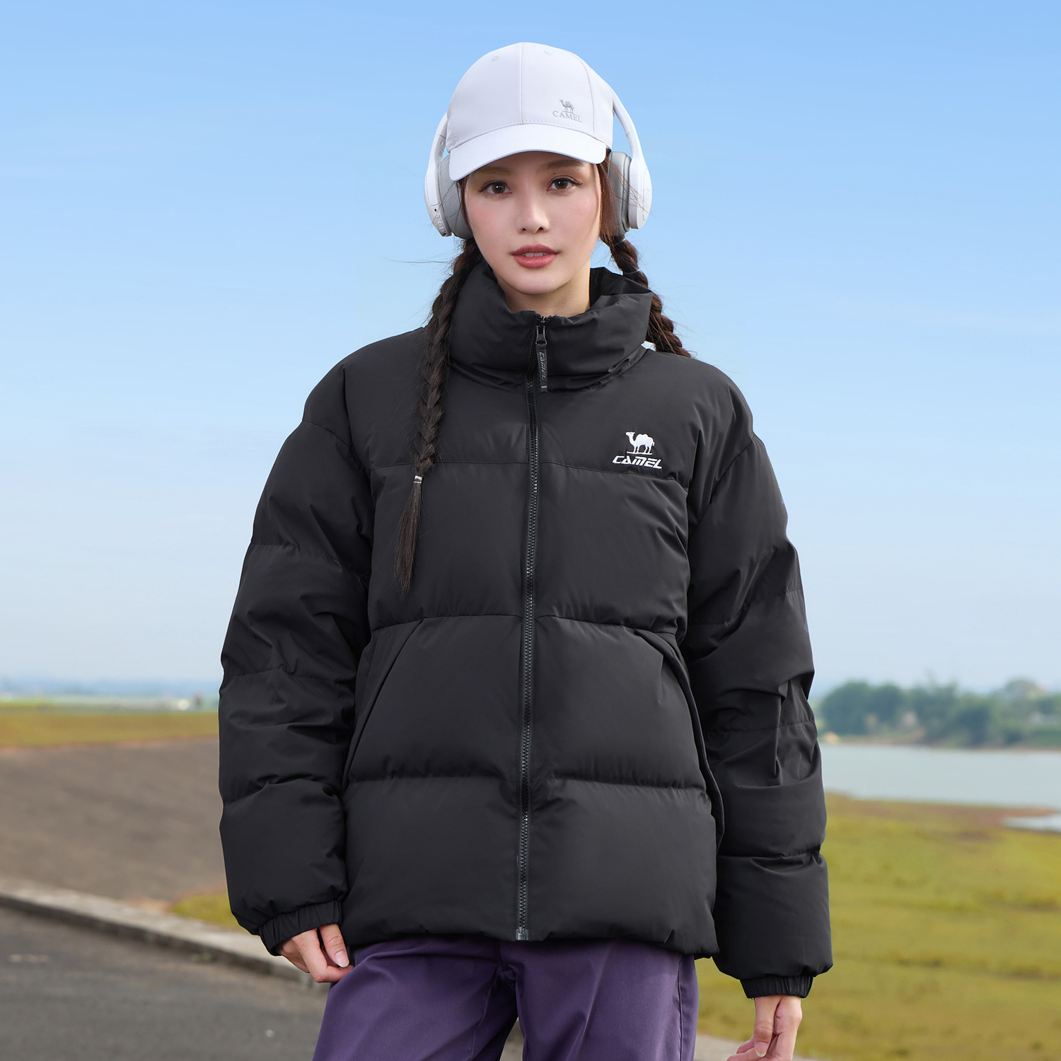 CAMEL Теплая флисовая серия пуховик Unisex, Phantom Black/Dream Pink