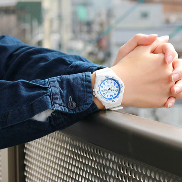 CASIO Часы Analog MRW 200HC 7B2V, Blue Dial and White Band