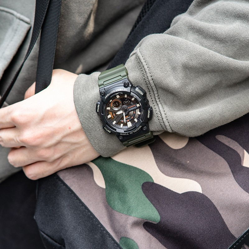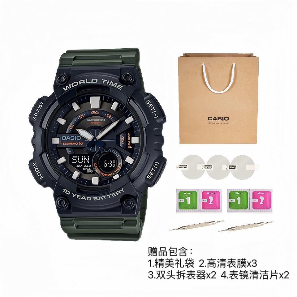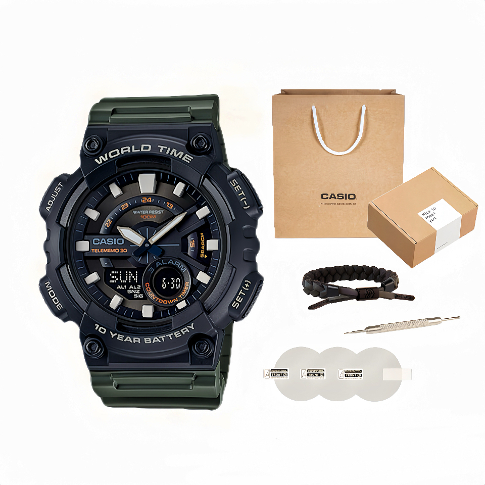 CASIO Часы G Shock AEQ 110W 3AV, Black Dial Green Watch Case