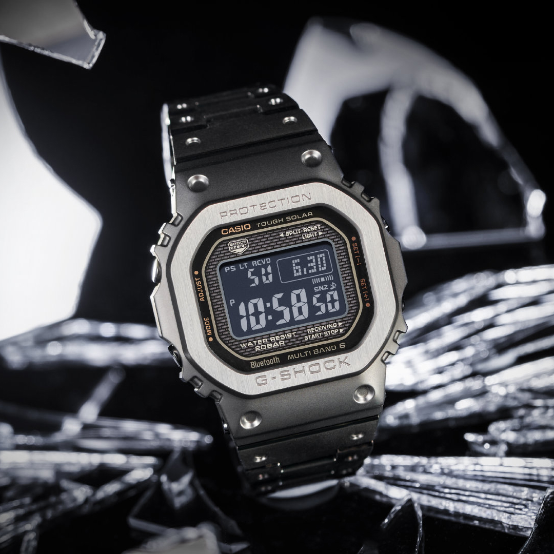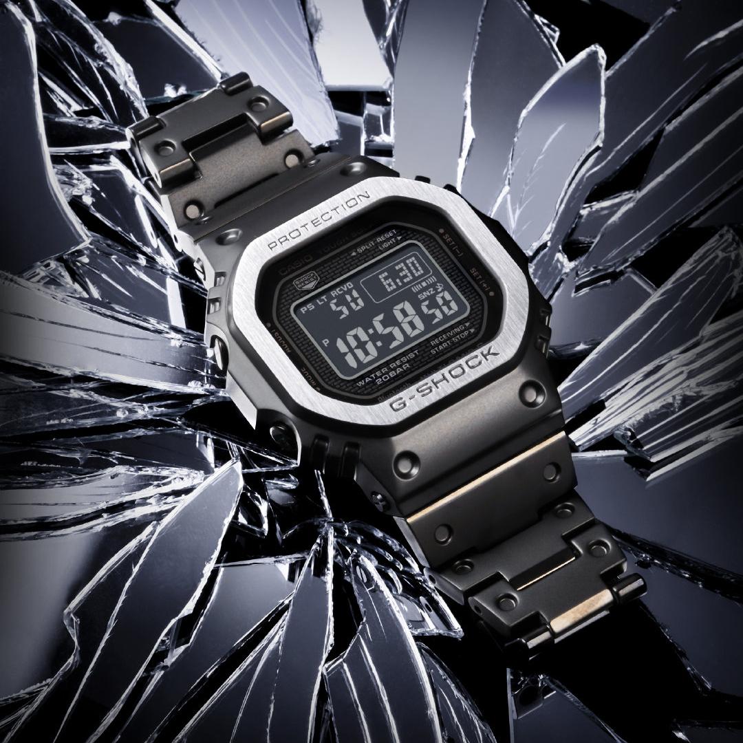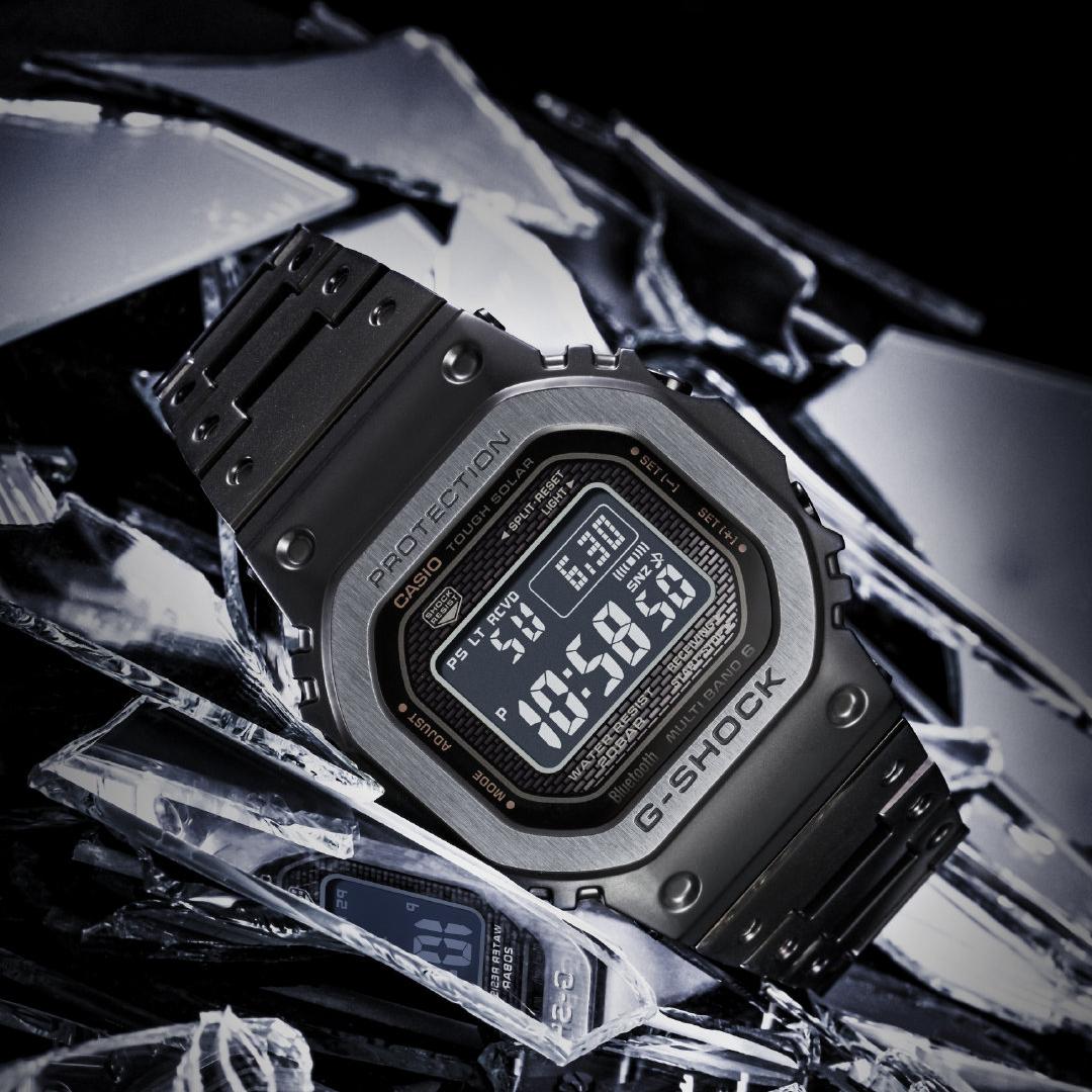 DW-5000C — оригинальная модель G-Shock 1983 года. Серия GMW-B5000 унаследовала ее характерный квадратный дизайн и получила полностью металлическую отделку вместе с улучшенными функциями, включая связь со смартфоном. Часы получили цельнометаллический корпус с использованием ударопрочного тонкого амортизирующего материала из смолы, вставленного между корпусом и прочным металлическим безелем из нержавеющей стали. Технология высокоплотного монтажа также позволяет часам сохранять свой размер. Задняя часть часов имеет прочную винтовую застежку и обработана DLC для устойчивости к износу.