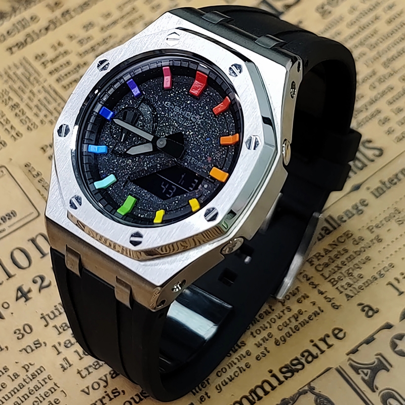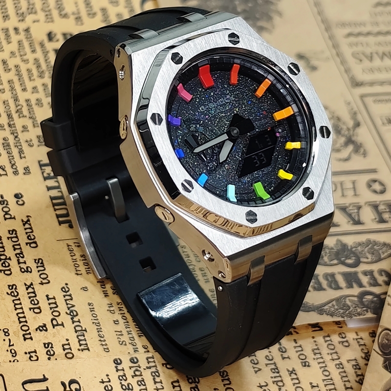 От G-SHOCK — прочных часов, которые постоянно эволюционируют в поисках бескомпромиссной прочности. Эта цифро-аналоговая комбинированная модель наследует концепцию первых моделей серии DW-5000C, став при этом ещё тоньше.