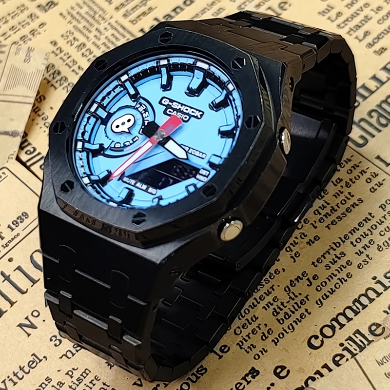 CASIO Часы Men Liquid Crystal/Analog Dual Display Series 44mm Blue Watch, Black Steel Comic Phantom Blue