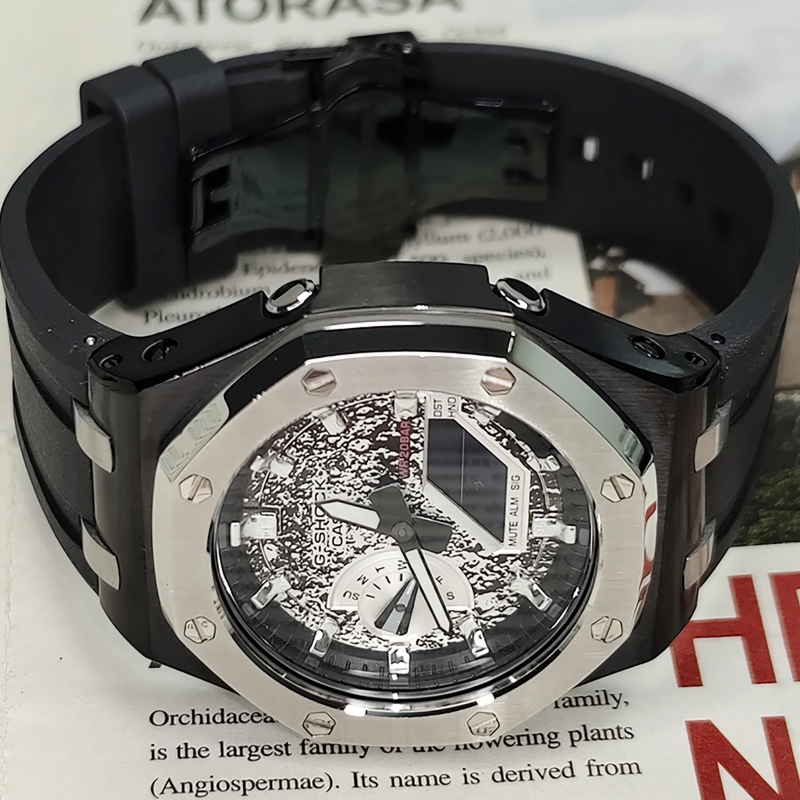 От G-SHOCK — прочных часов, которые постоянно эволюционируют в поисках бескомпромиссной прочности. Эта цифро-аналоговая комбинированная модель наследует концепцию первых моделей серии DW-5000C, став при этом ещё тоньше.