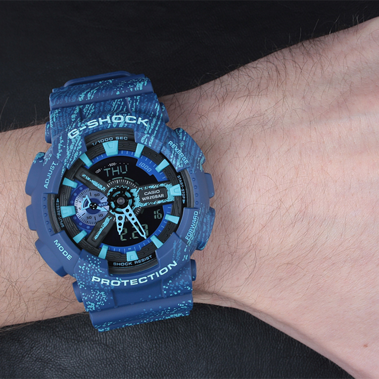 CASIO Часы Men Liquid Crystal/Analog Dual Display Series 55mm Blue Watch GA-110TX-2A, Blue Dial 21 786₽