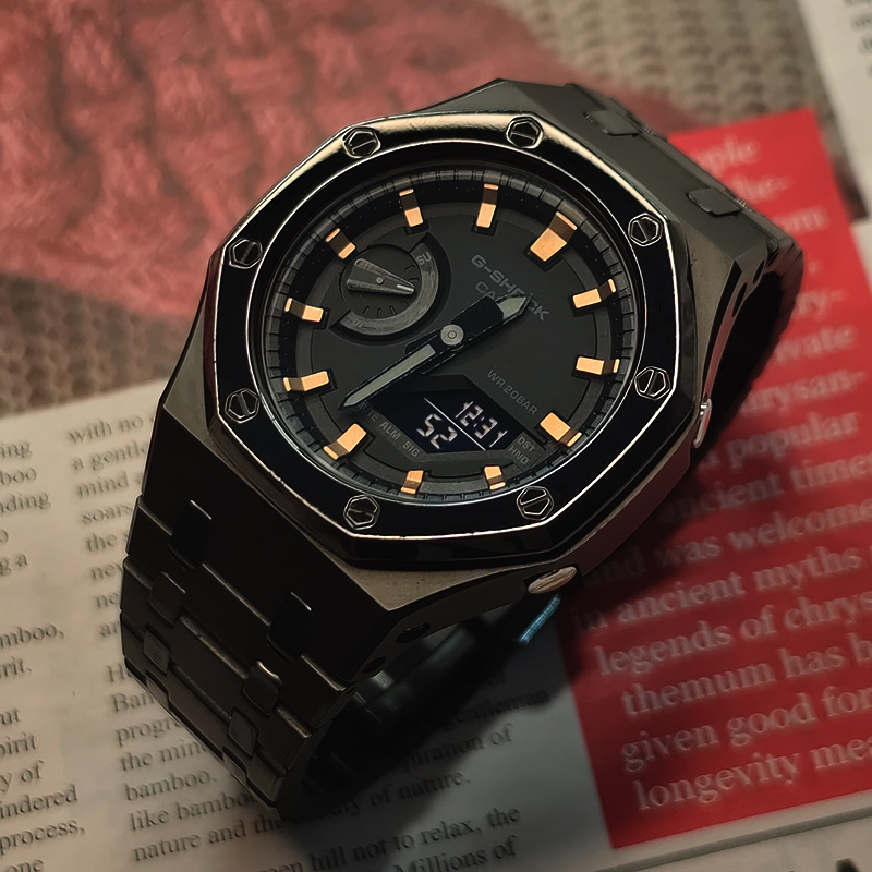 От G-SHOCK — прочных часов, которые постоянно эволюционируют в поисках бескомпромиссной прочности. Эта цифро-аналоговая комбинированная модель наследует концепцию первых моделей серии DW-5000C, став при этом ещё тоньше.