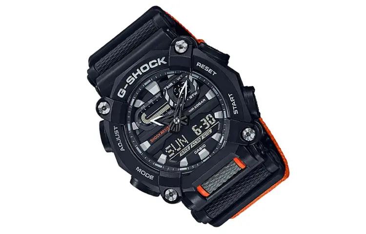 CASIO Часы Men Liquid Crystal/Analog Dual Display Series Black Watch GA-900C-1A4, Black Dial Orange Strap 12 423₽