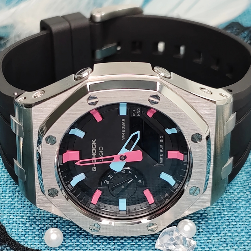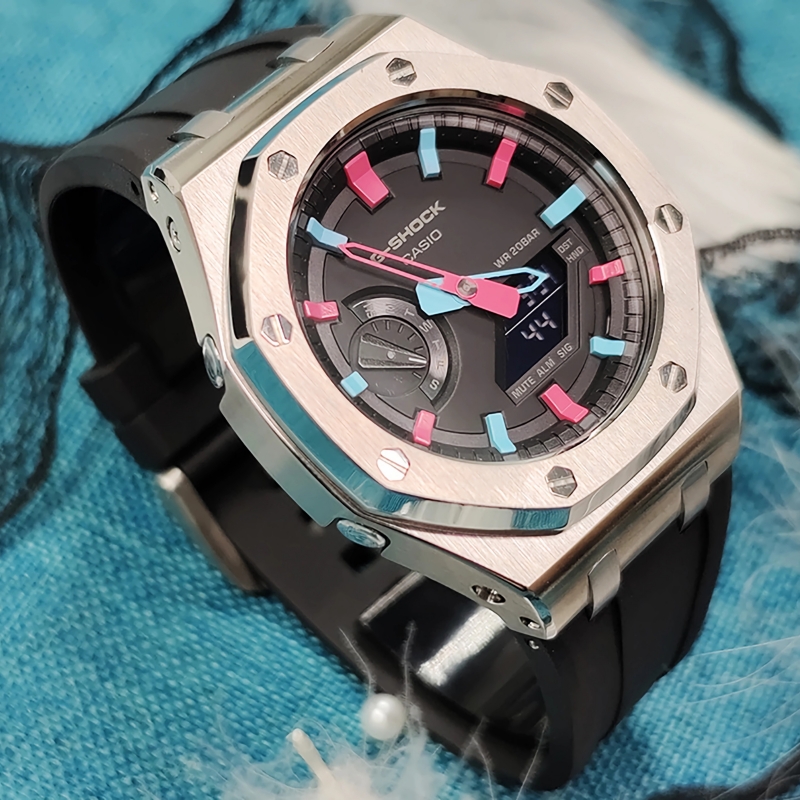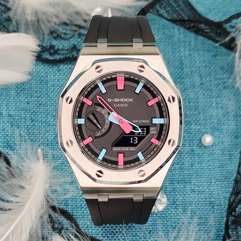 Сохраняет восьмиугольную форму, использовавшуюся в оригинальной модели DW-5000C. Комбинированная модель, разработанная в лаконичном дизайне, где устранено всё лишнее, но сохранена жесткая конструкция.