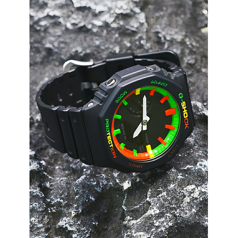 От G-SHOCK — прочных часов, которые постоянно эволюционируют в поисках бескомпромиссной прочности. Эта цифро-аналоговая комбинированная модель наследует концепцию первых моделей серии DW-5000C, став при этом ещё тоньше.