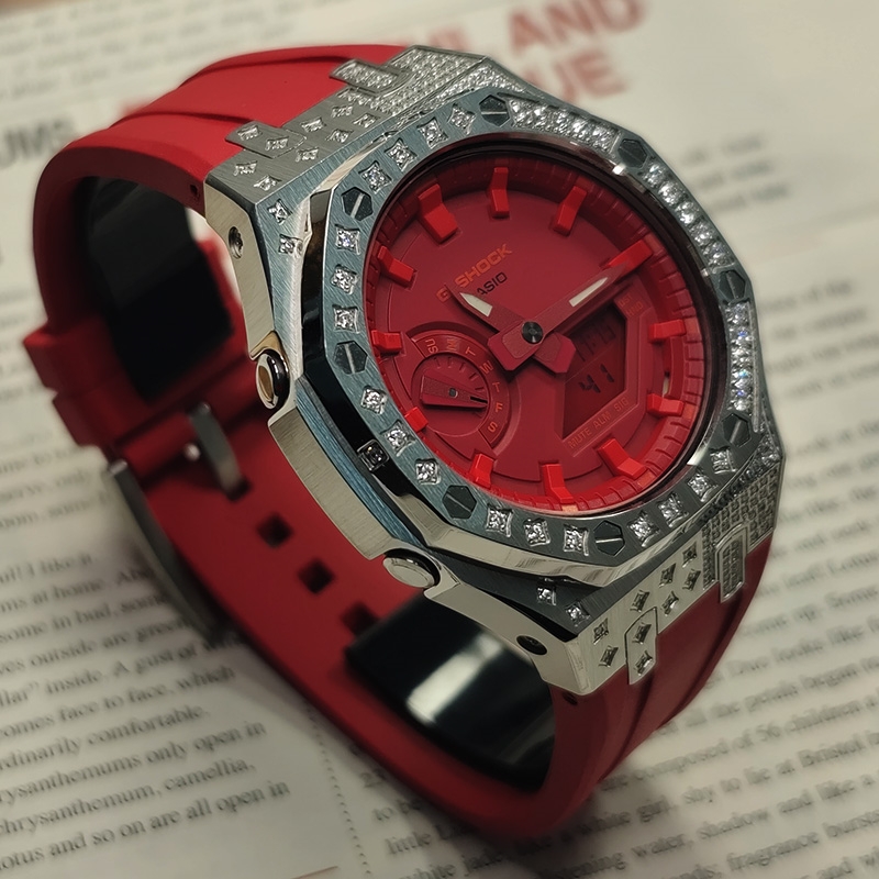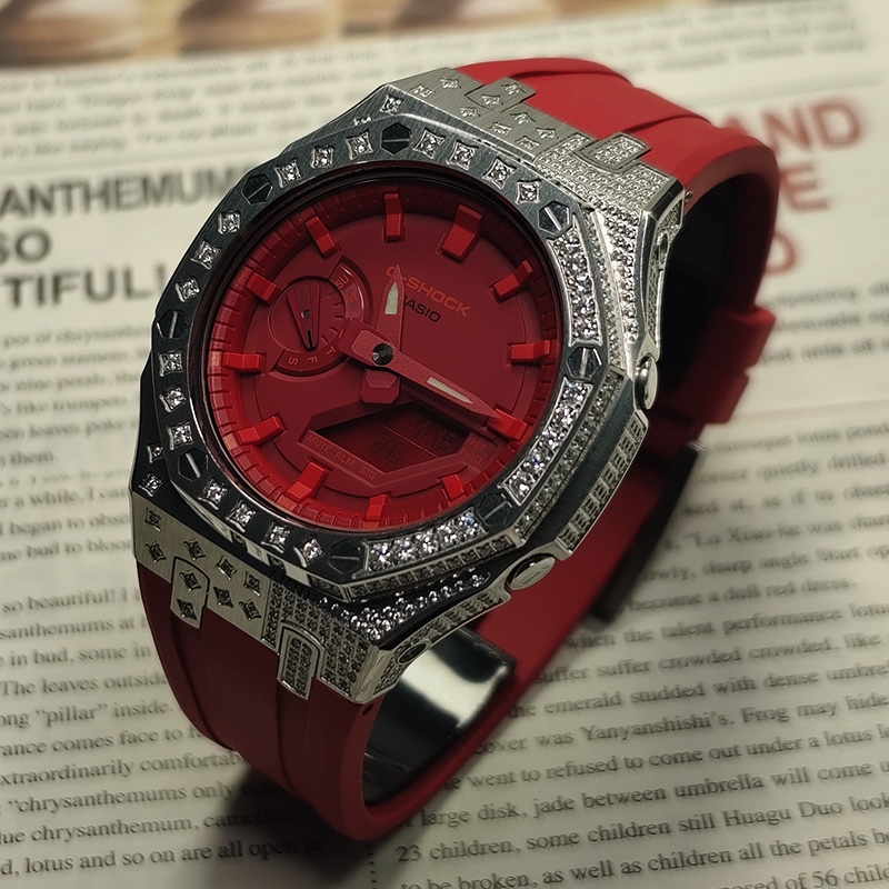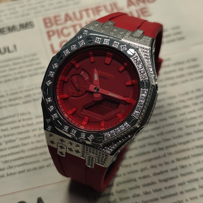От G-SHOCK — часов прочности, которые продолжают эволюционировать в поисках абсолютной надежности, — эта модель использует структуру Carbon Core Guard. Корпус изготовлен из мелкозернистой смолы, содержащей углеродное волокно, которая, оставаясь легкой, превосходит по жесткости обычную смолу. Это предотвращает повреждения и деформации от ударов, защищая внутренний модуль. Кроме того, двухслойная структура задней крышки также обеспечивает защиту от воздействий на тыльную сторону часов. Ударопрочная конструкция кнопок позволила создать дизайн без традиционных защитных кожухов вокруг них. В дизайне выделяются трехмерный циферблат и смелое расположение крупных фронтальных кнопок. Модель выполнена в брутальном стиле, создающем мощный и выразительный образ.