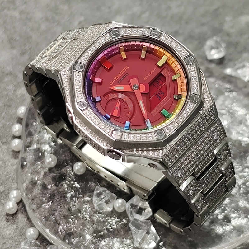 От G-SHOCK — часов прочности, которые продолжают эволюционировать в поисках абсолютной надежности, — эта модель использует структуру Carbon Core Guard. Корпус изготовлен из мелкозернистой смолы, содержащей углеродное волокно, которая, оставаясь легкой, превосходит по жесткости обычную смолу. Это предотвращает повреждения и деформации от ударов, защищая внутренний модуль. Кроме того, двухслойная структура задней крышки также обеспечивает защиту от воздействий на тыльную сторону часов. Ударопрочная конструкция кнопок позволила создать дизайн без традиционных защитных кожухов вокруг них. В дизайне выделяются трехмерный циферблат и смелое расположение крупных фронтальных кнопок. Модель выполнена в брутальном стиле, создающем мощный и выразительный образ.