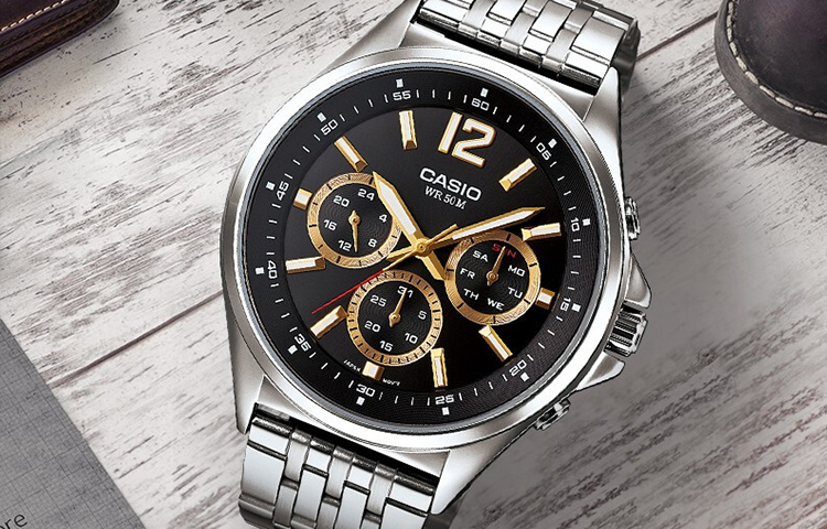 CASIO Часы Men Standard Series 41.1mm Black Watch, Black Dial Silver Steel Strap