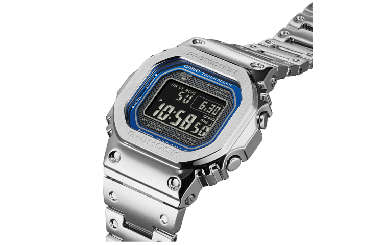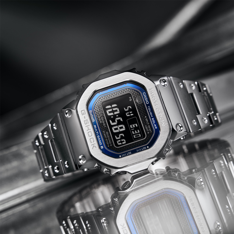 GMW-5000 — оригинальная модель G-Shock 1983 года. Серия GMW-B5000 унаследовала ее характерный квадратный дизайн и получила полностью металлическую отделку вместе с улучшенными функциями, включая связь со смартфоном. Технология высокоплотного монтажа также позволяет часам сохранять свой размер. Задняя часть часов имеет прочную винтовую застежку и обработана DLC для устойчивости к износу.