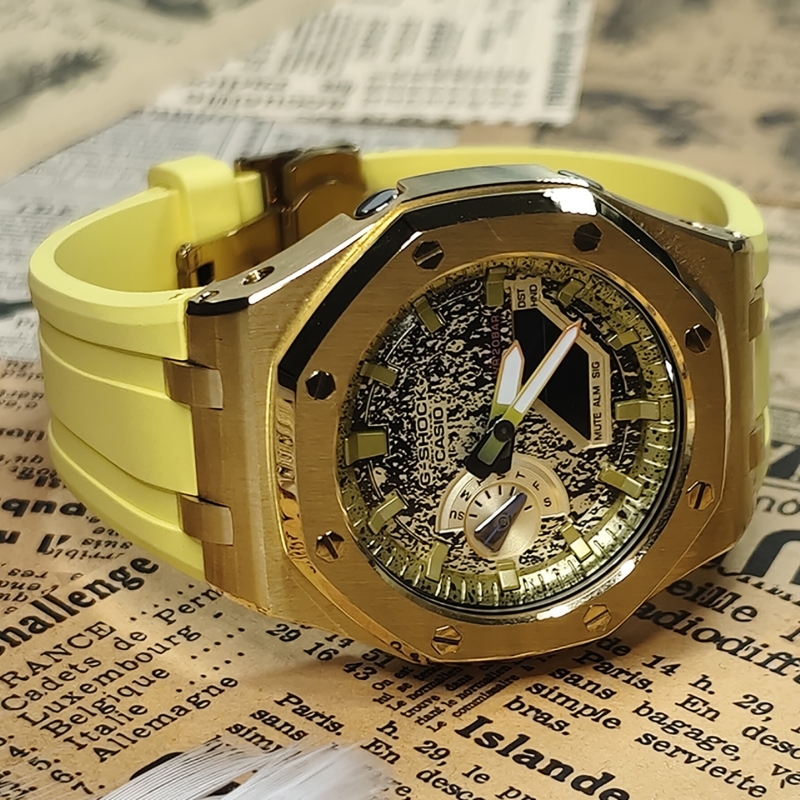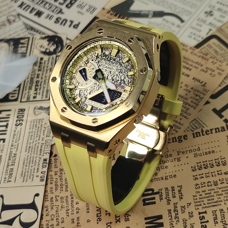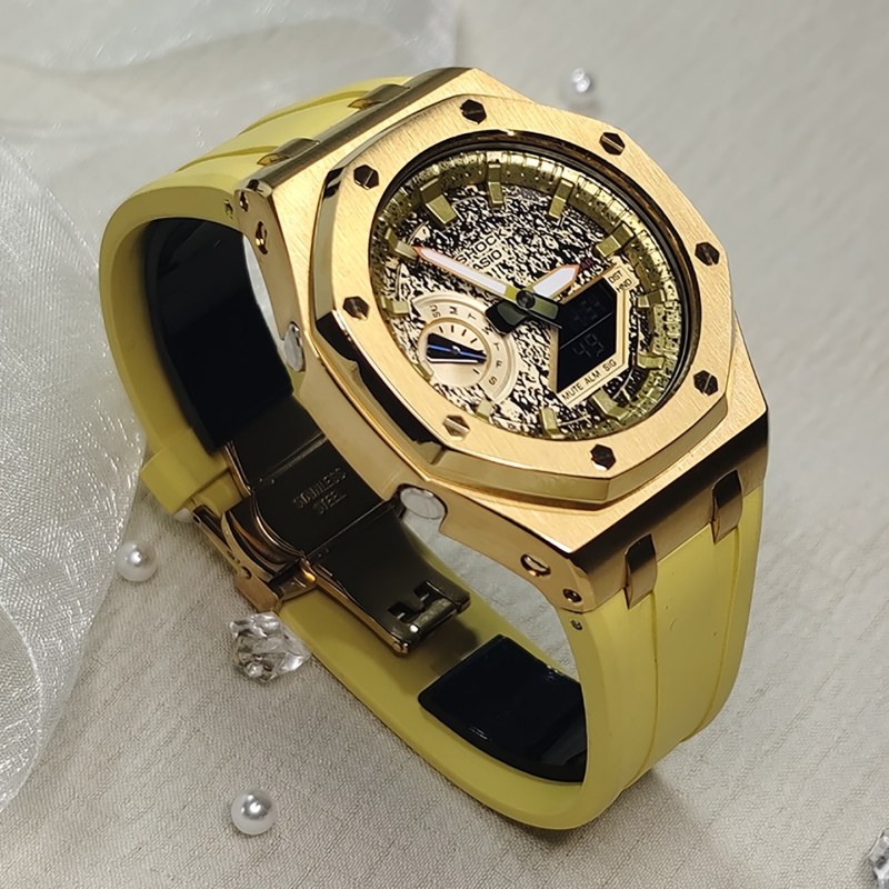 CASIO Часы Unisex Liquid Crystal/Analog Dual Display Series 44mm Yellow Watch, Gold Dial