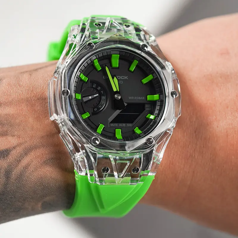 Сохраняет восьмиугольную форму, использовавшуюся в оригинальной модели DW-5000C. Комбинированная модель, разработанная в лаконичном дизайне, где устранено всё лишнее, но сохранена жесткая конструкция.