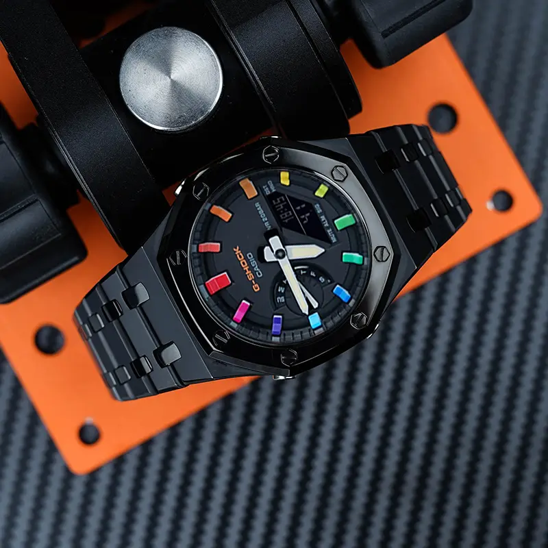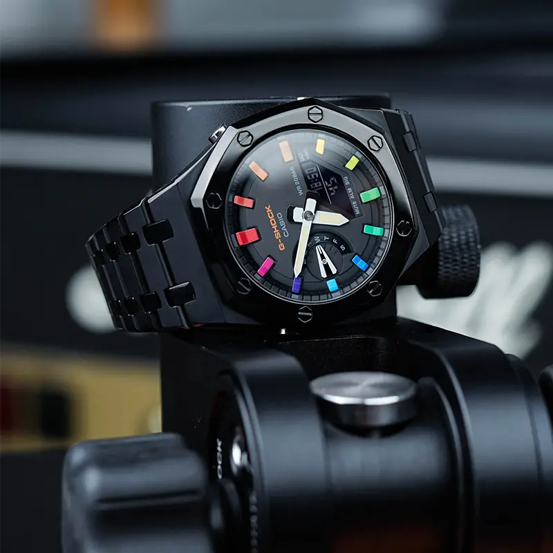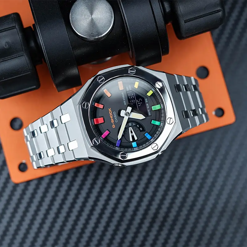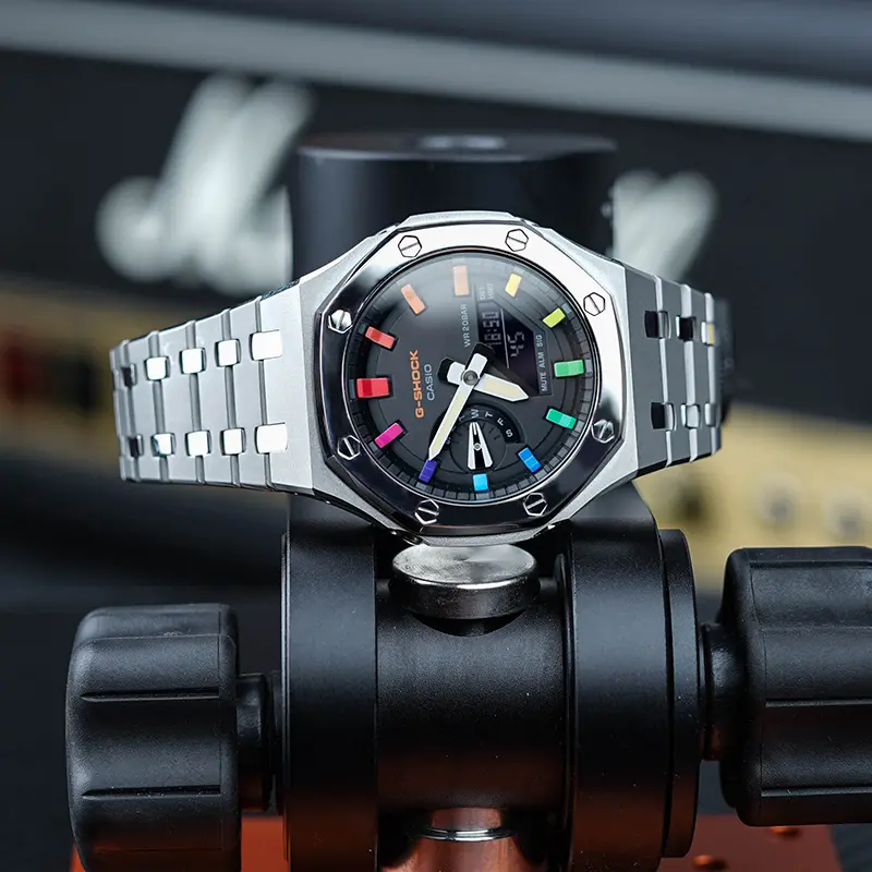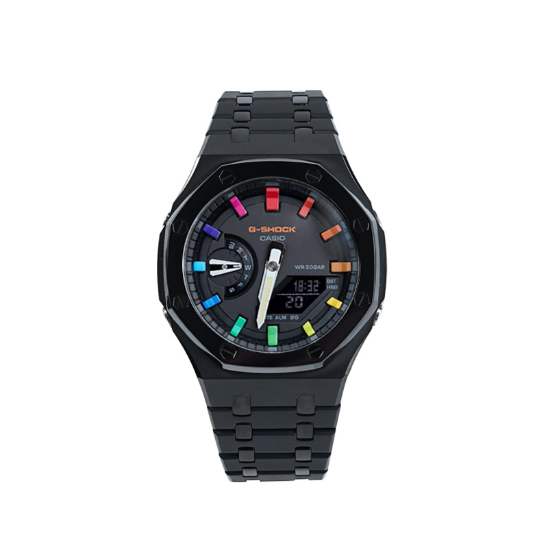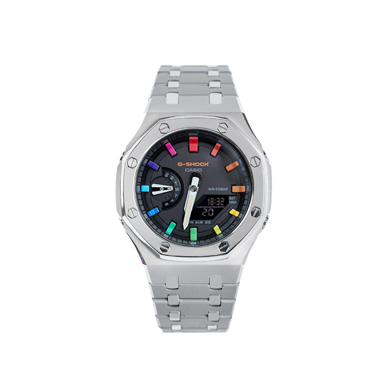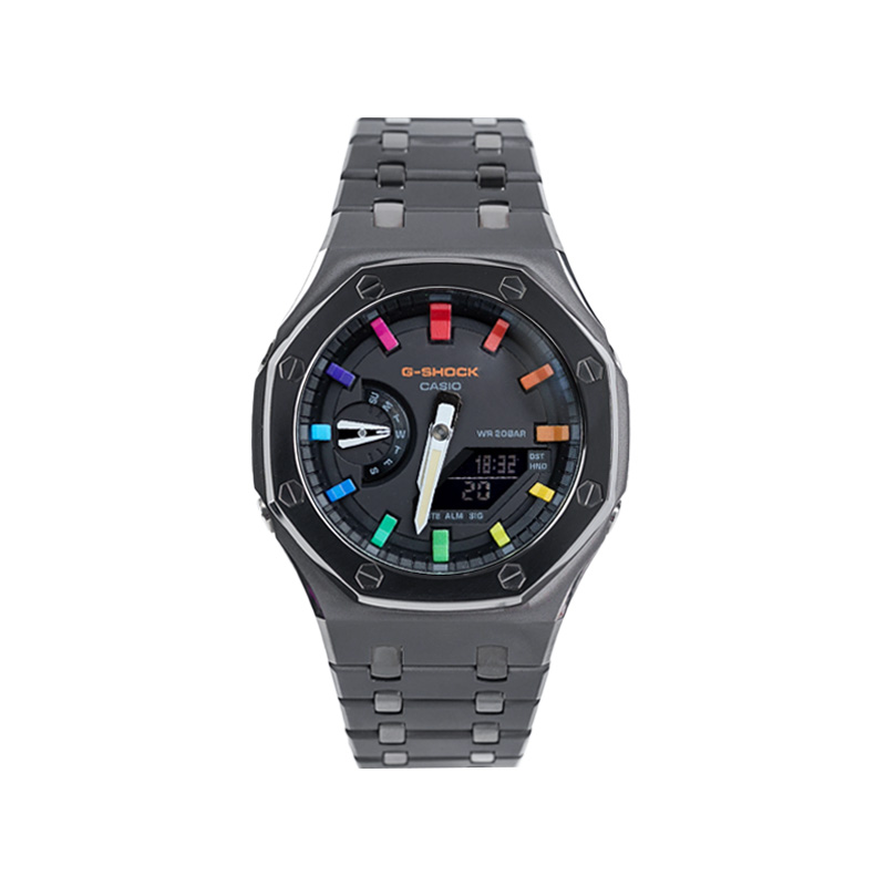 CASIO Часы Unisex Liquid Crystal/Analog Dual Display Series 48.5mm Black Watch, Rainbow Epoch Interstellar Sand Silver