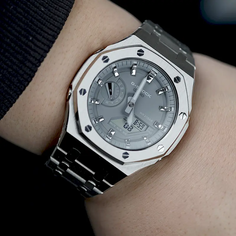 CASIO Часы Unisex Liquid Crystal/Analog Dual Display Series 48.5mm Gray Watch, Shadow Forged Silver