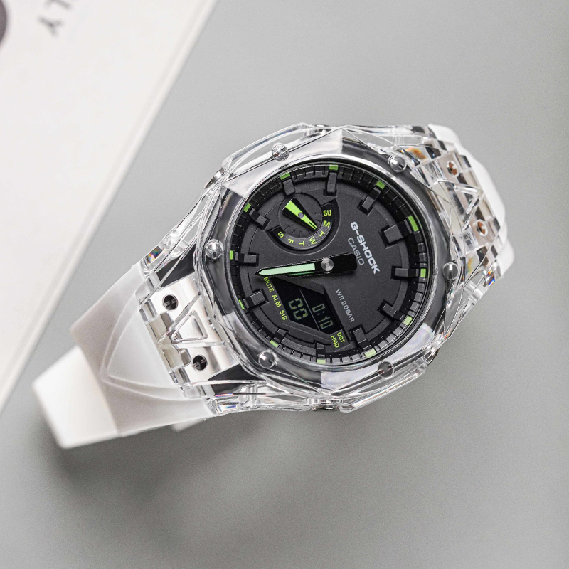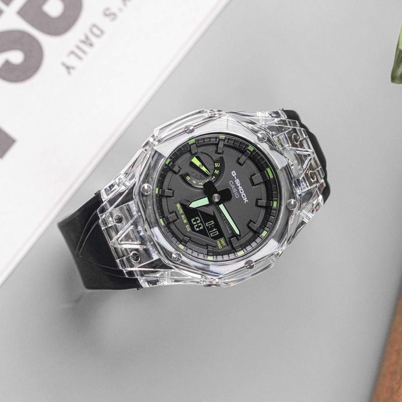 CASIO Часы Unisex Liquid Crystal/Analog Dual Display Series Black Watch, Hublot Armor Green Strap