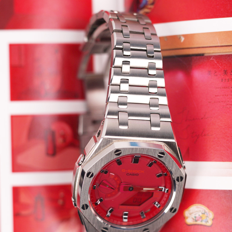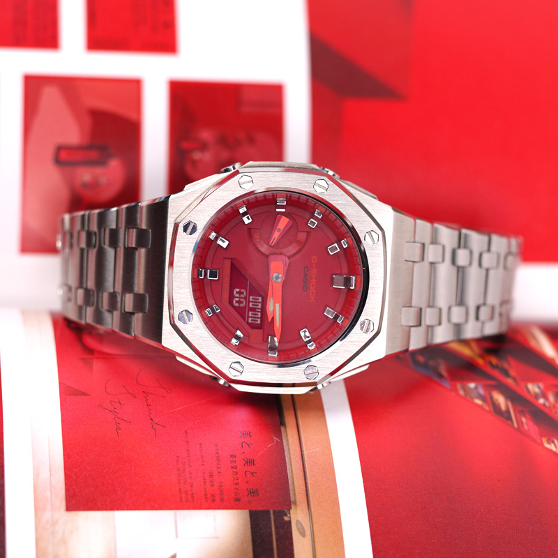 От G-SHOCK — часов прочности, которые продолжают эволюционировать в поисках абсолютной надежности, — эта модель использует структуру Carbon Core Guard. Корпус изготовлен из мелкозернистой смолы, содержащей углеродное волокно, которая, оставаясь легкой, превосходит по жесткости обычную смолу. Это предотвращает повреждения и деформации от ударов, защищая внутренний модуль. Кроме того, двухслойная структура задней крышки также обеспечивает защиту от воздействий на тыльную сторону часов. Ударопрочная конструкция кнопок позволила создать дизайн без традиционных защитных кожухов вокруг них. В дизайне выделяются трехмерный циферблат и смелое расположение крупных фронтальных кнопок. Модель выполнена в брутальном стиле, создающем мощный и выразительный образ.
