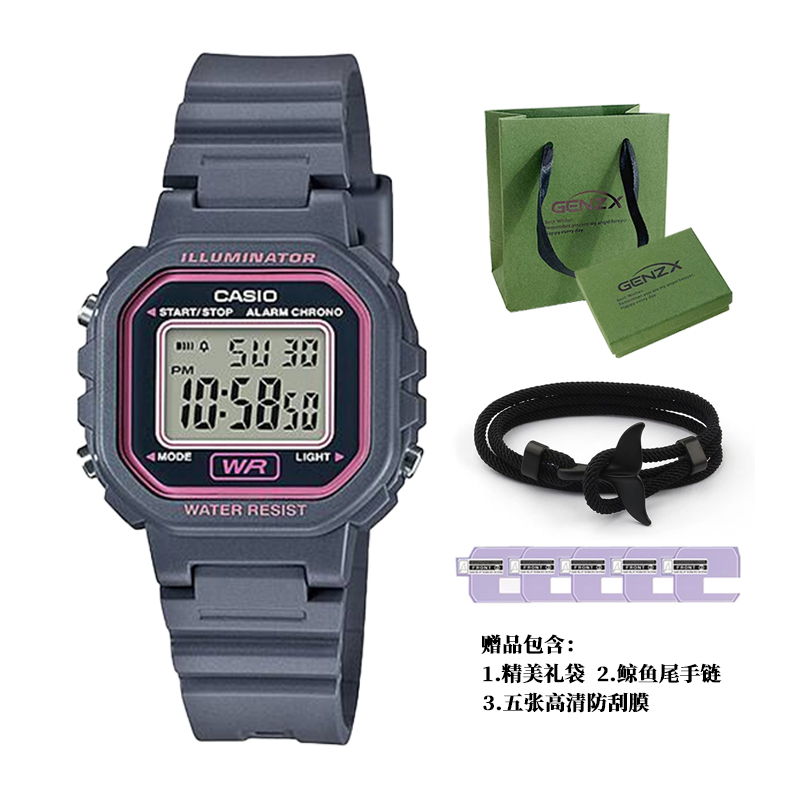 CASIO Часы Women's DIGITAL Series 34.5mm Gray Watch LA-20WH-8A, Gray/Pink Dial