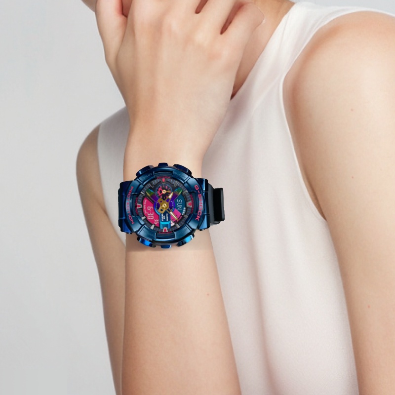CASIO Часы Women's Full Metal Series Blue Watch GM-110SN-2ADR, Multicolor Dial