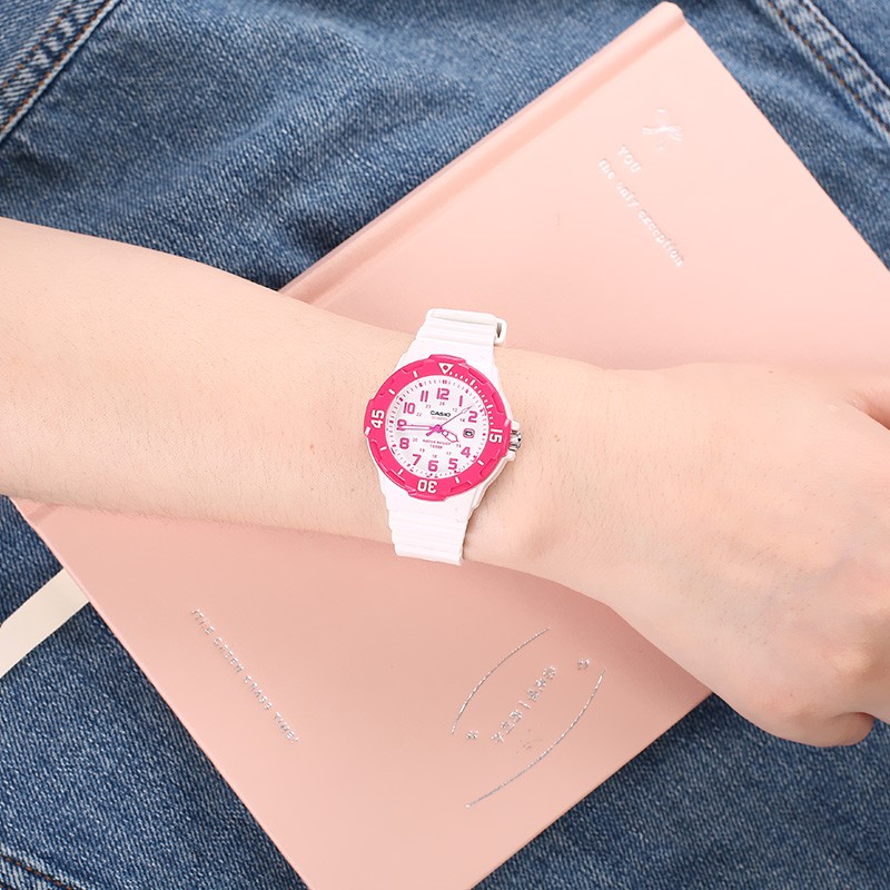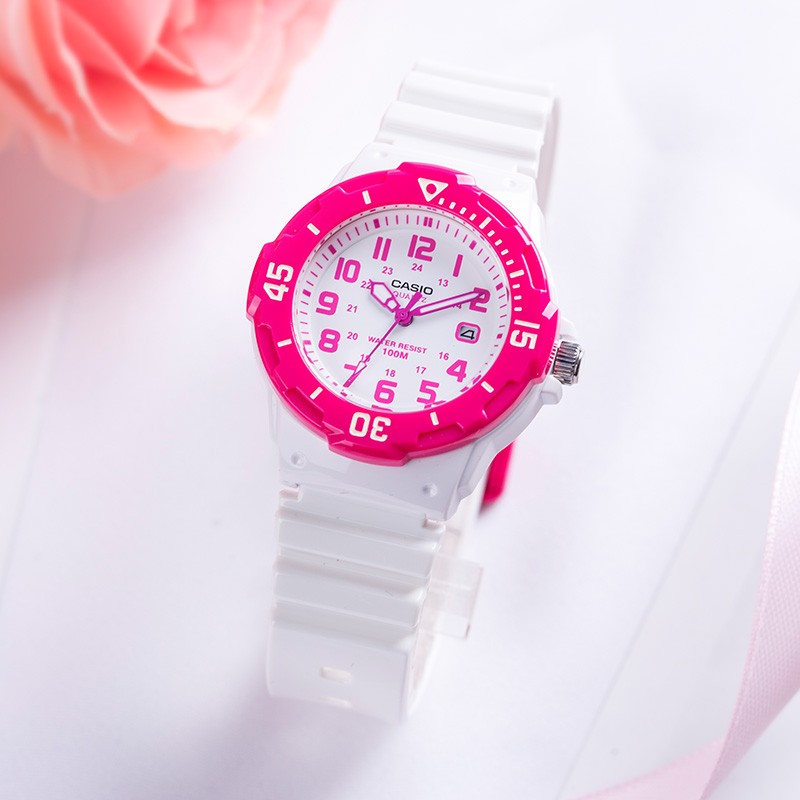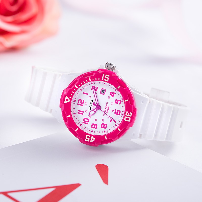 CASIO Часы Women's YOUTH White Watch LRW-200H-4B, Pink/White Dial