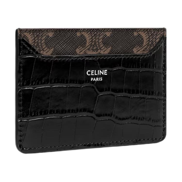 CELINE Триумф холщовый кожаный визитник мужской черный