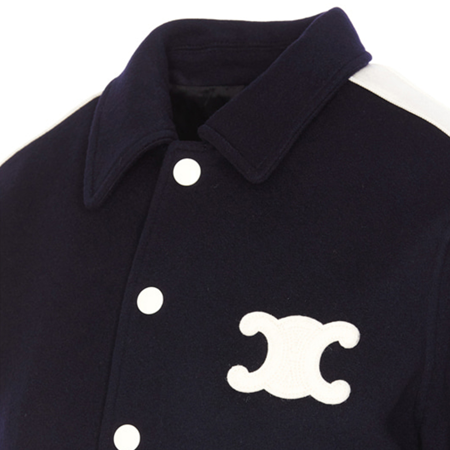 CELINE Триумф Тедди Куртка из двустороннего кашемира, Marine Blue