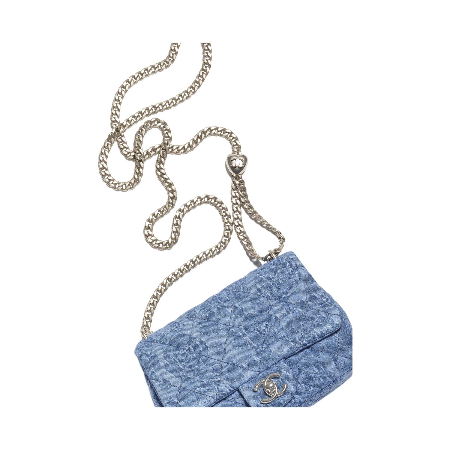 CHANEL Джинсовая мини-сумка квадратной формы с клапаном