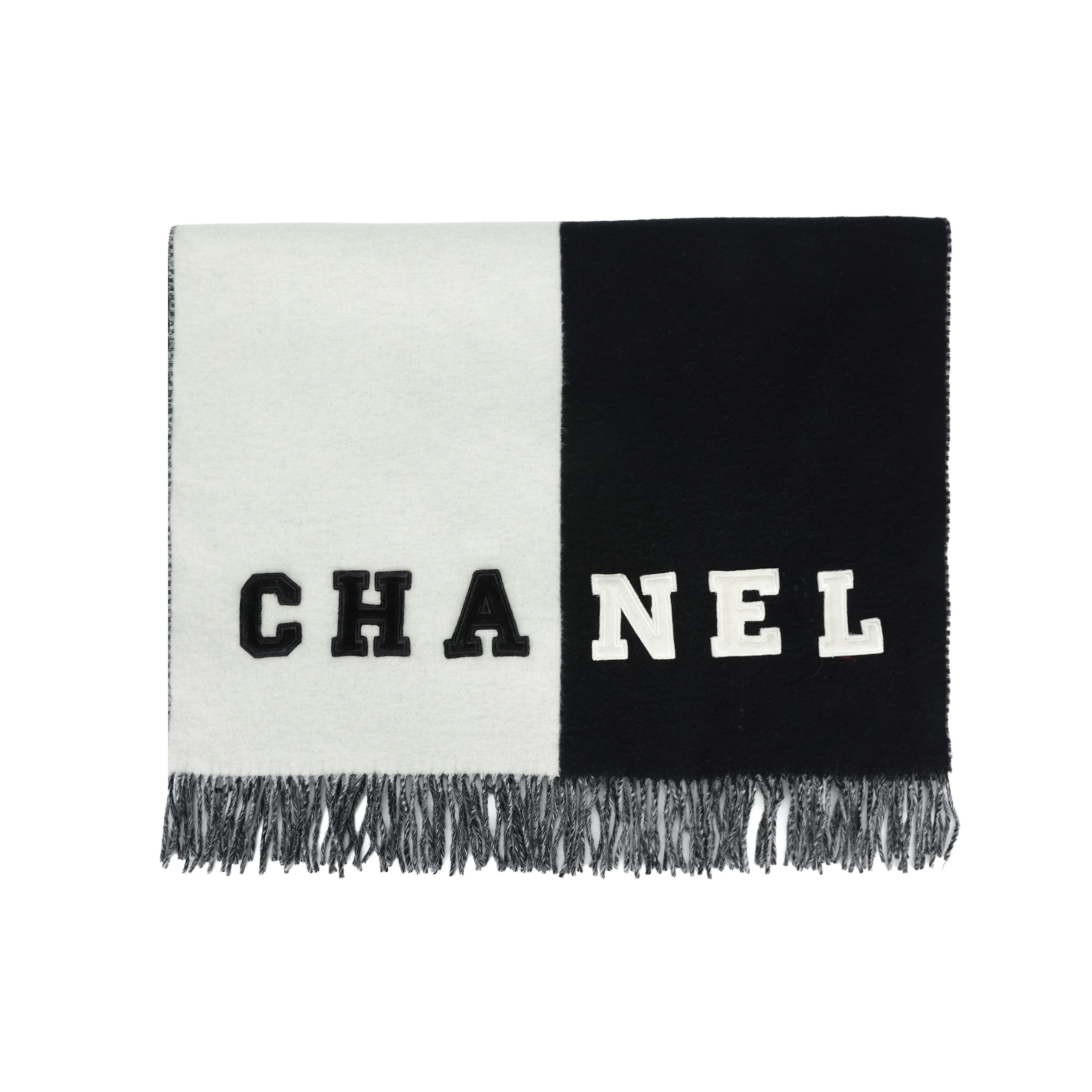CHANEL Кашемировый вязаный шаль сине-белый, Blue/White