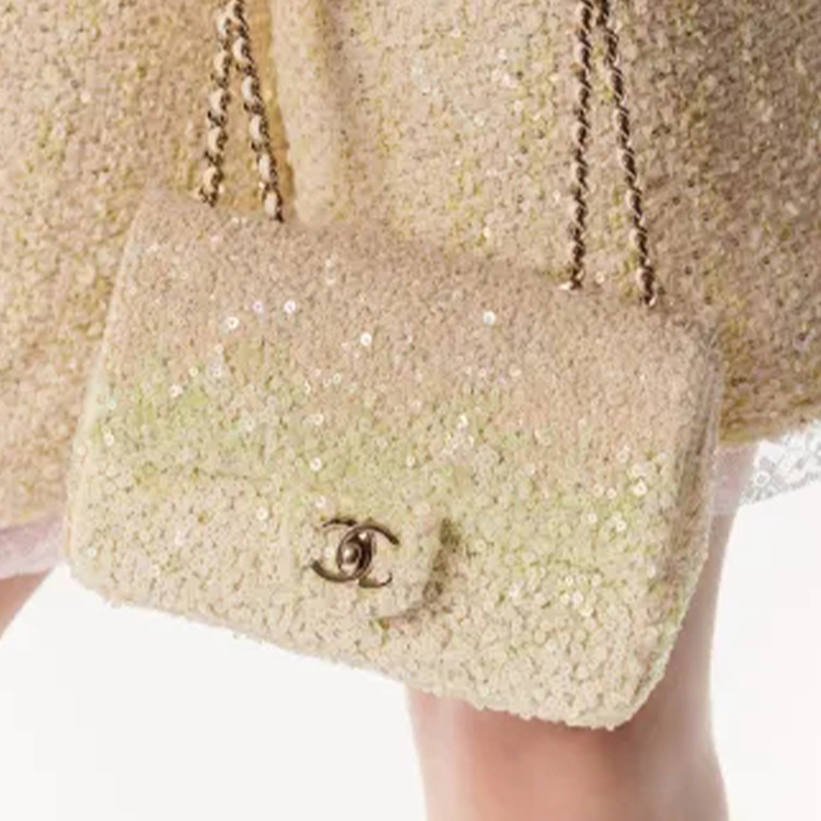 CHANEL Металлический клатч на цепочке через плечо миниатюрный женский светло-зеленый с белым