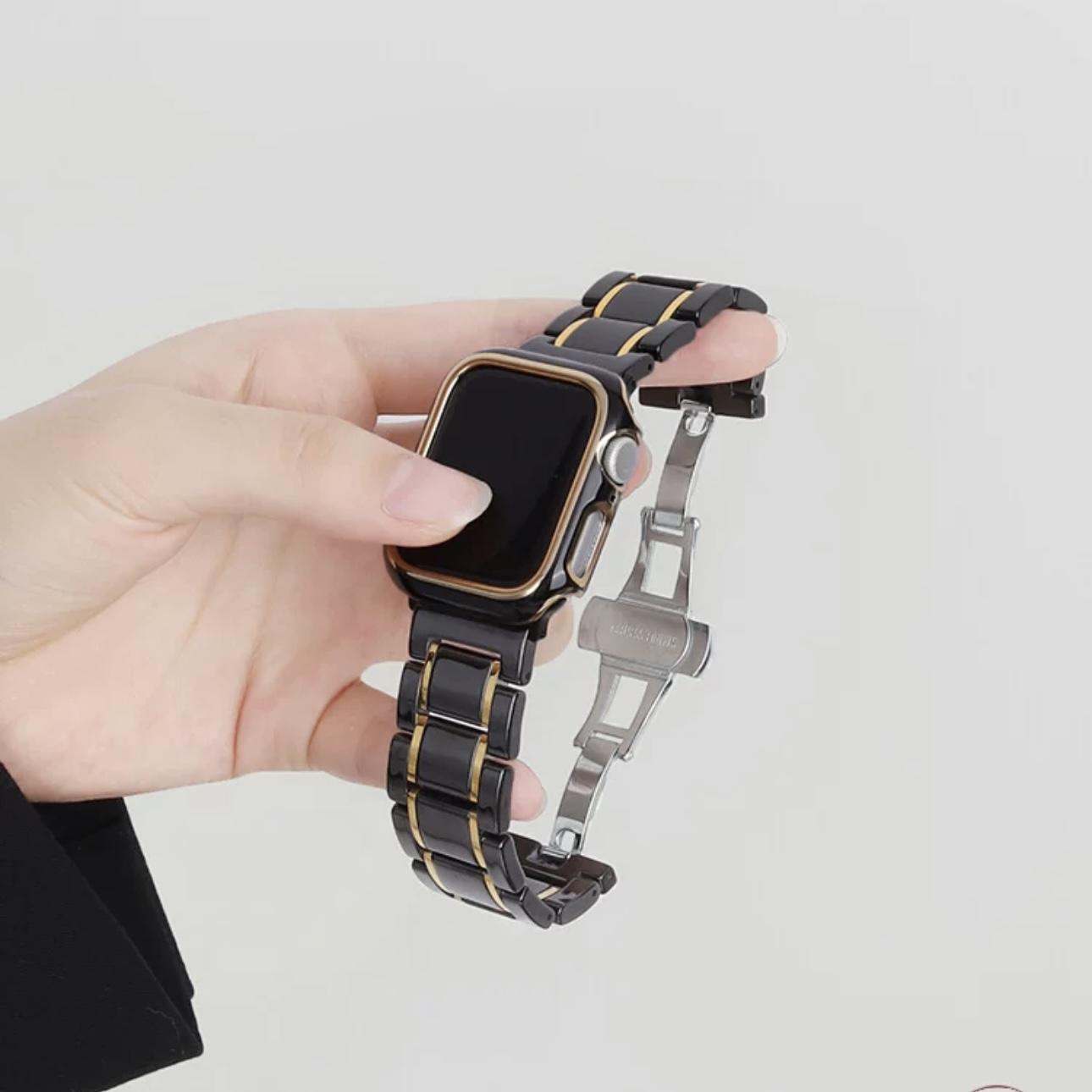 CHENSONG Часы Strap Apple Compatibility Ceramic Material, Black gold + black gold shell