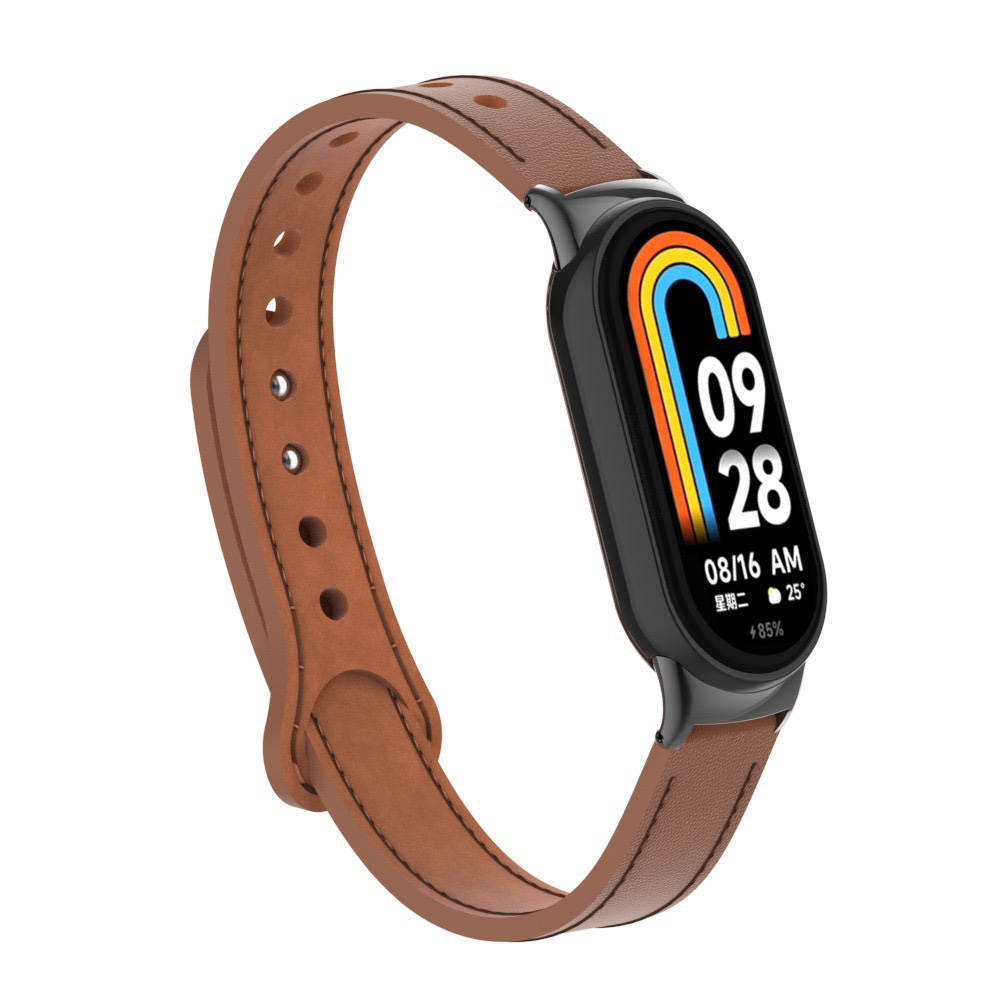CHENSONG Часы Strap Xiaomi Compatibility Leather, Reverse buckle double nail model - black [with metal link]