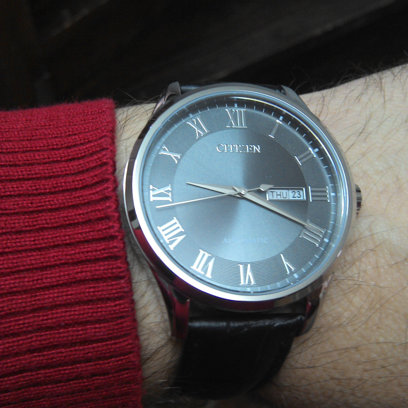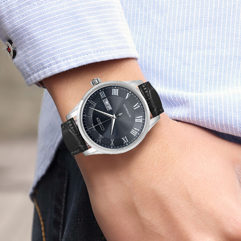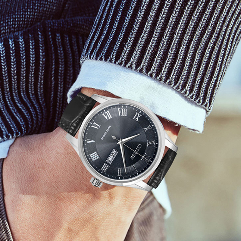 CITIZEN Часы Automatic Mechanical Movement Cow Leather Strap Watch Men's Watch Black Dial, Black Dial