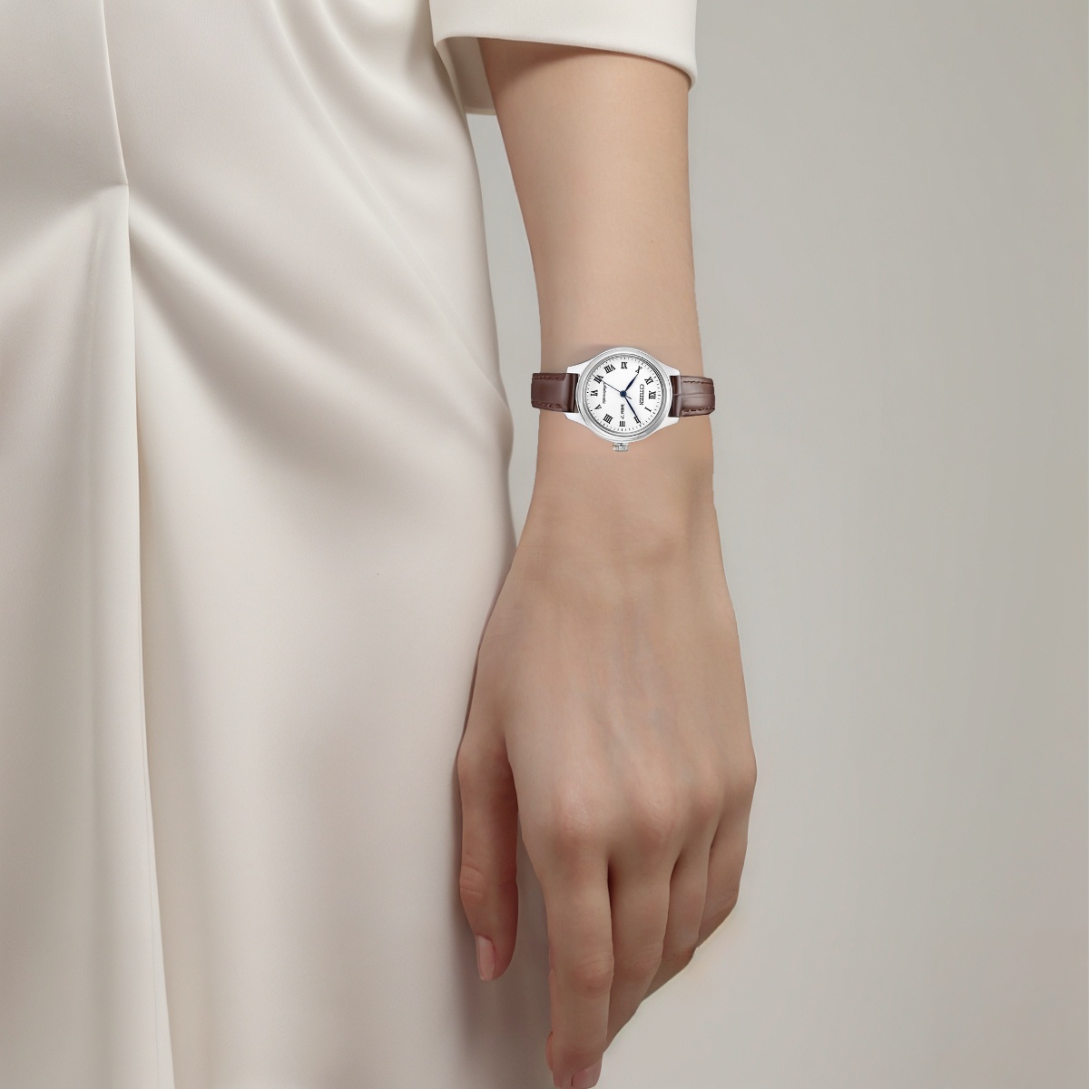 CITIZEN Часы Automatic Mechanical Movement Cowhide Strap Watch Women's Watch White Dial, White Dial