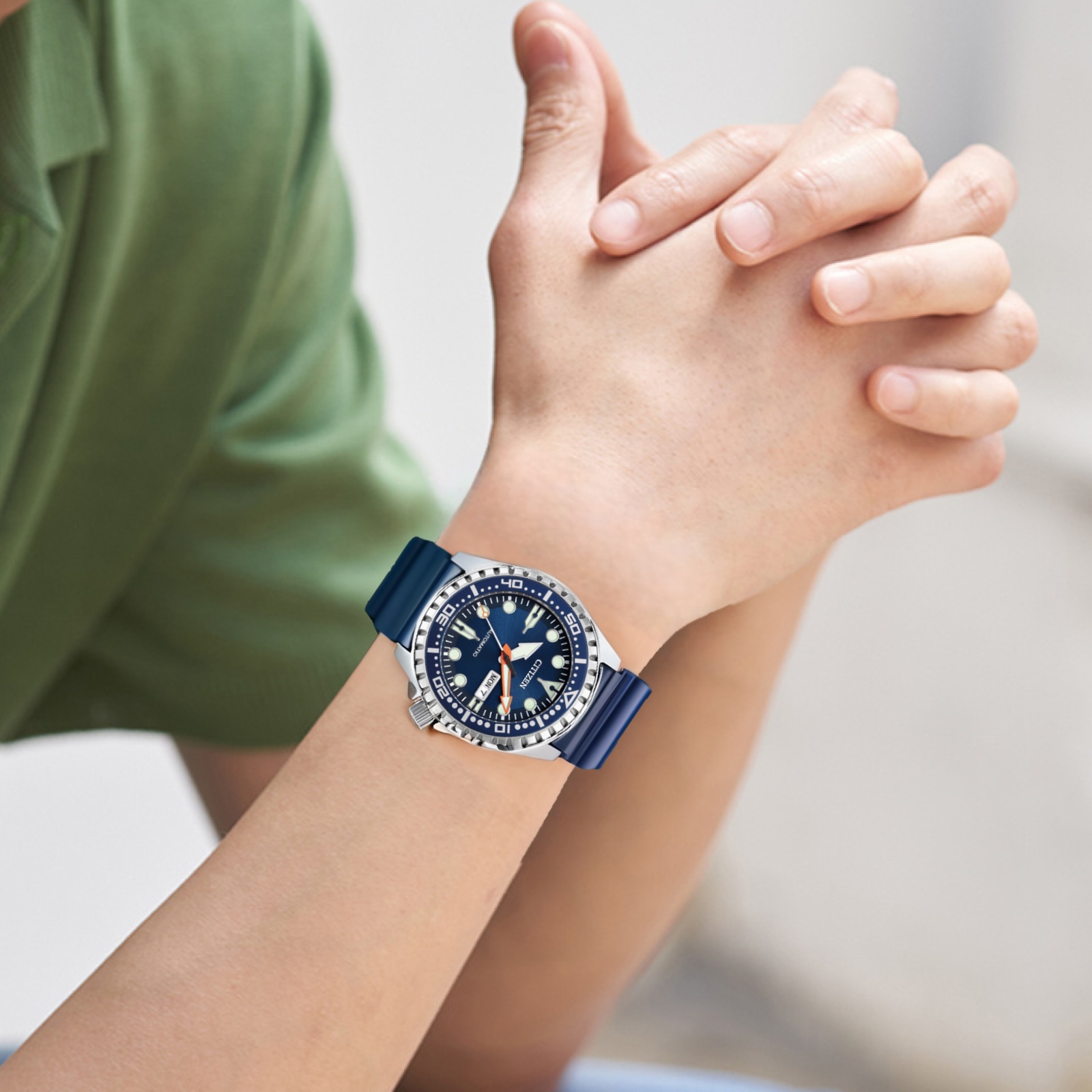 CITIZEN Часы Automatic Mechanical Movement Rubber Strap Watch Men's Watch Blue Dial, Blue Dial