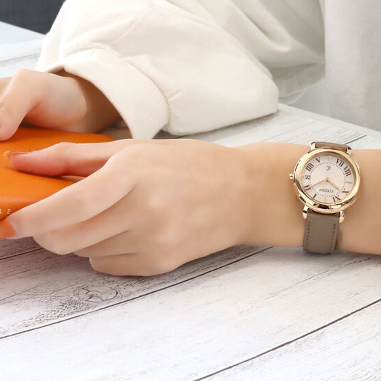 CITIZEN Часы C Collection Quartz Movement Leather Strap Watch Women's Watch Silver Dial, White Dial Milk Tea Strap