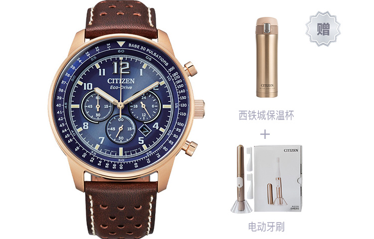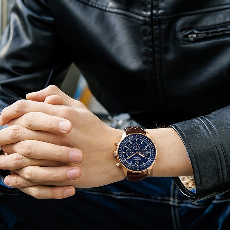 CITIZEN Часы FUTURE FORCE Series Light Powered Quartz Movement Genuine Leather Strap Watch Men's Watch Blue Dial, Blue